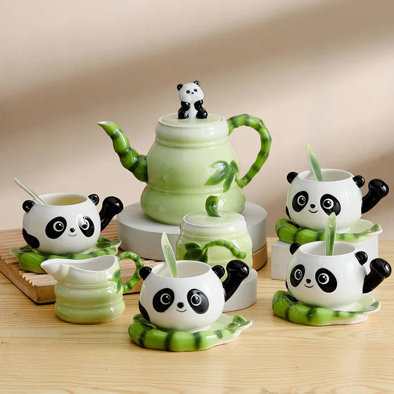 Creative Panda Tea Set Made In China Ceramic High-grade Flowered Tea Pot Cup Coffee Cup Set Gift Enamel Cup Kitchen Tableware - Купить с бесплатной доставкой