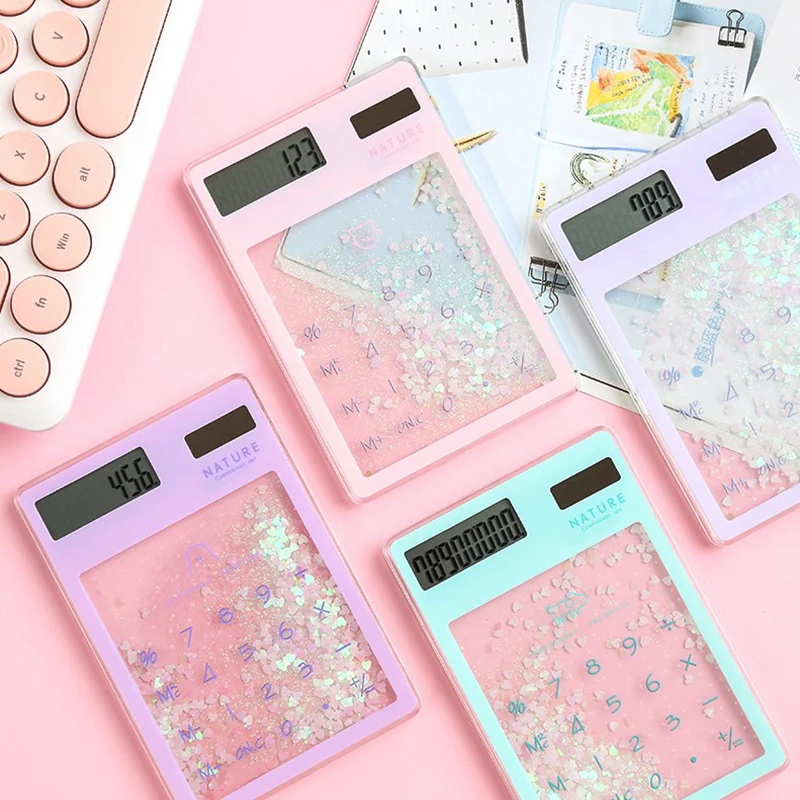 Creative Quicksand Cute Calculator Transparent Calculator Solar Energy Calculator Student Portable Touch Mini Solar Calculator - Купить с бесплатной доставкой