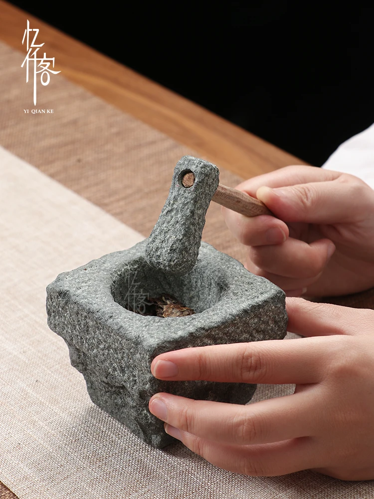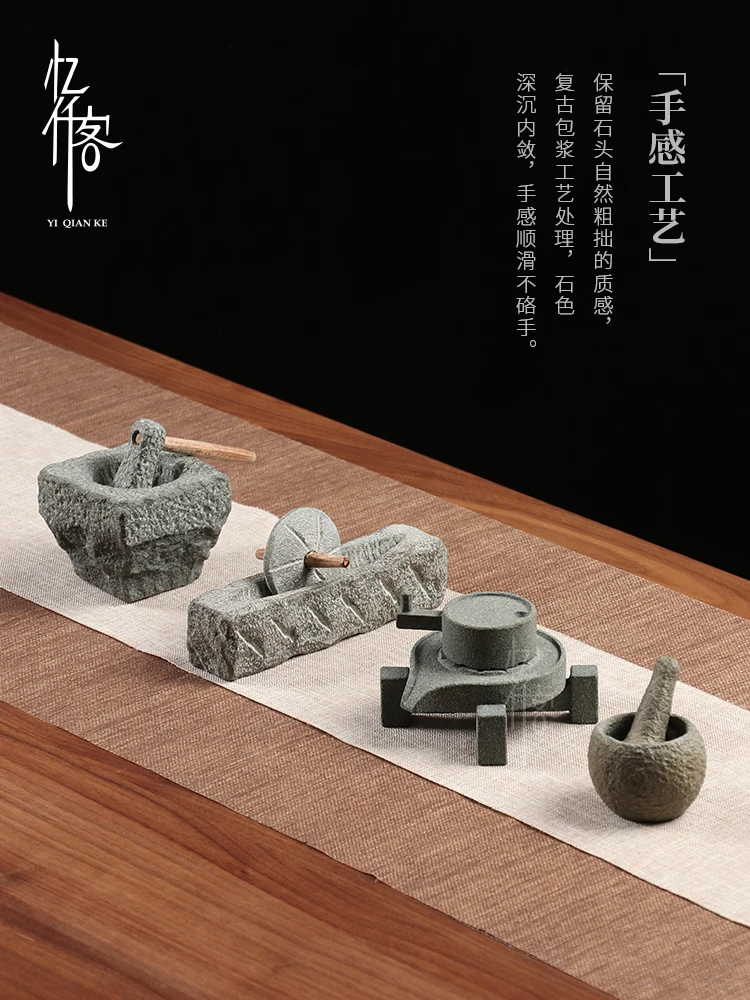 Creative Retro Small Stone Mortar Stone Mill Creative Bluestone Mill Tea Ornaments Decoration Supportable Tea Set Tea Set - Купить с бесплатной доставкой
