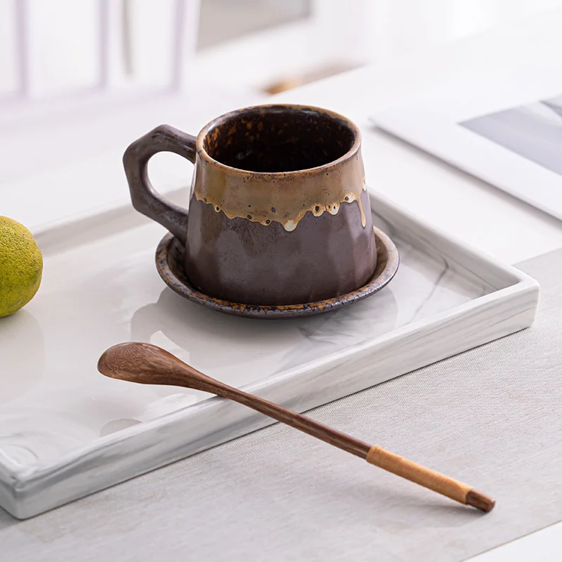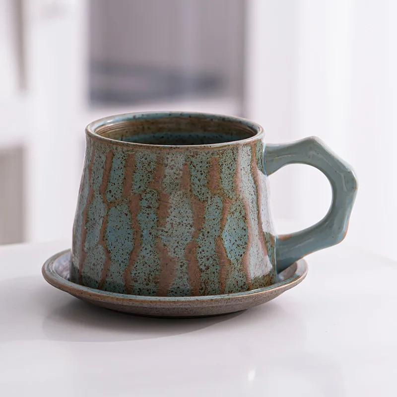 Creative Rough Ceramic Coffee Cups and Saucers Set Simple Manual Japanese Retro Gold Art Cup Set for Hand Brewing Coffee Mug - Купить с бесплатной доставкой