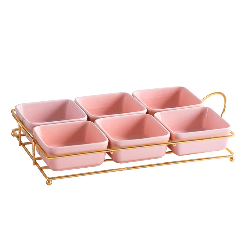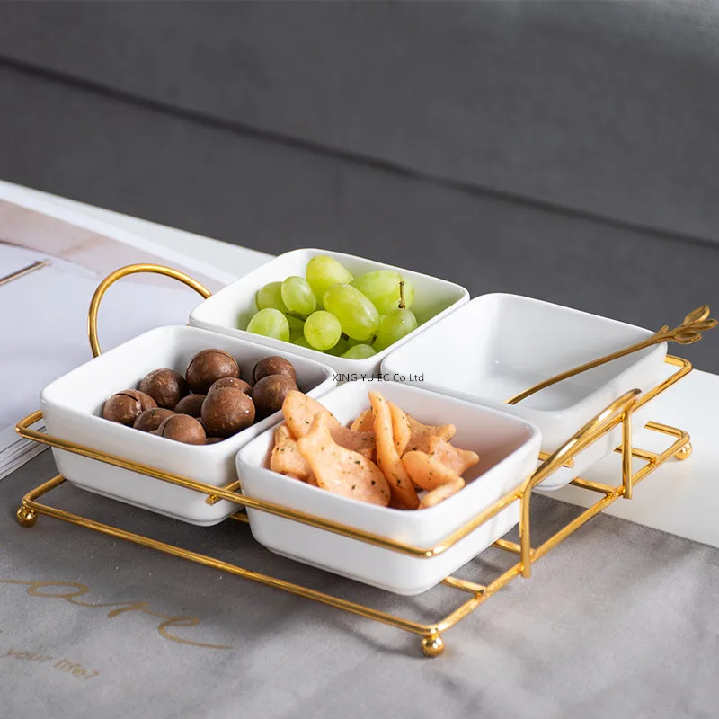 Creative Separated Fruit Plate Simple Iron Ceramic Square Plate Dried Fruit Snack Platter Household Tableware Storage Tray - Купить с бесплатной доставкой