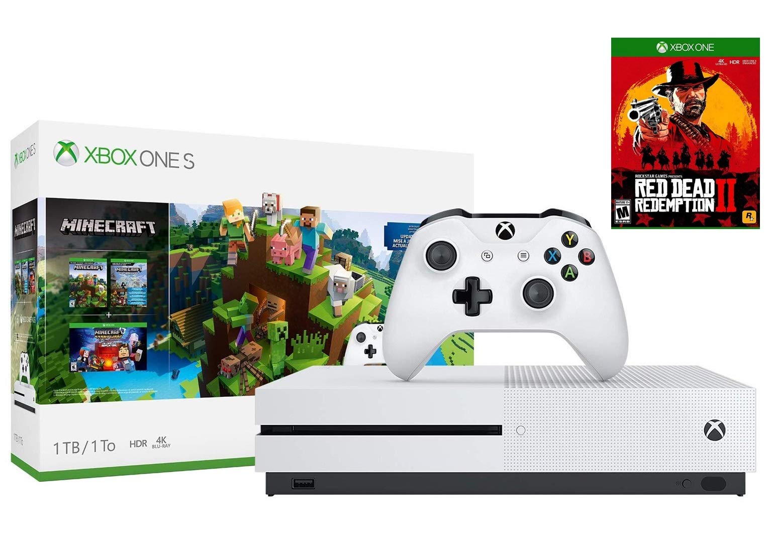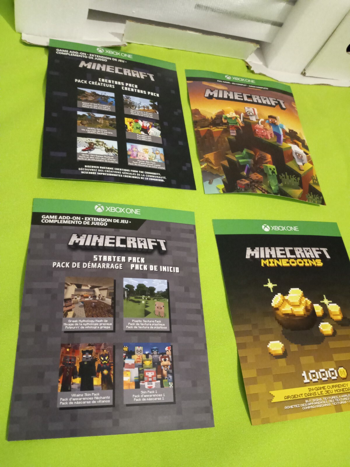 Survive online with friends on console, mobile, and Windows 10, or share the adventure at home in split-screen multiplayer . This collection includes the Minecraft base game, 1000 Minecoins, Starter Pack DLC and Creators Pack DLC . Includes: 1,000 MINECOINS . Use them to get maps, skins, textures packs and more from the in-game Marketplace!