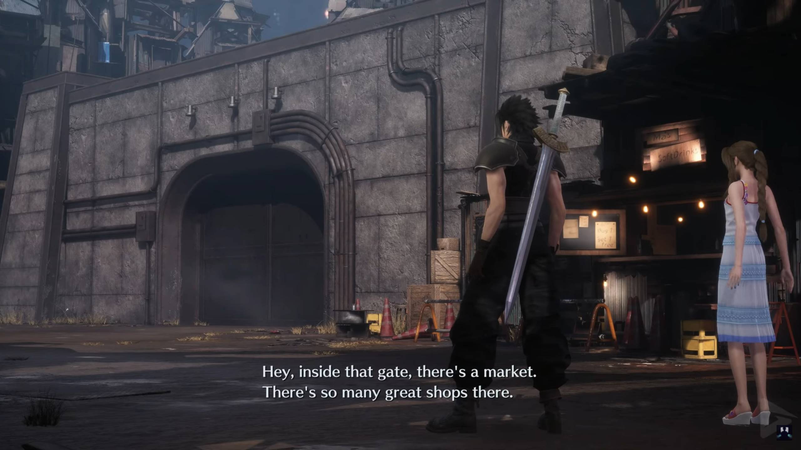Далі вони проводять час разом коло легендарного дитячого майданчика, де Зак розказує Айріс про СОЛДАТ. Зака переривають і наказують йти назад до штаб квартири Шинри.