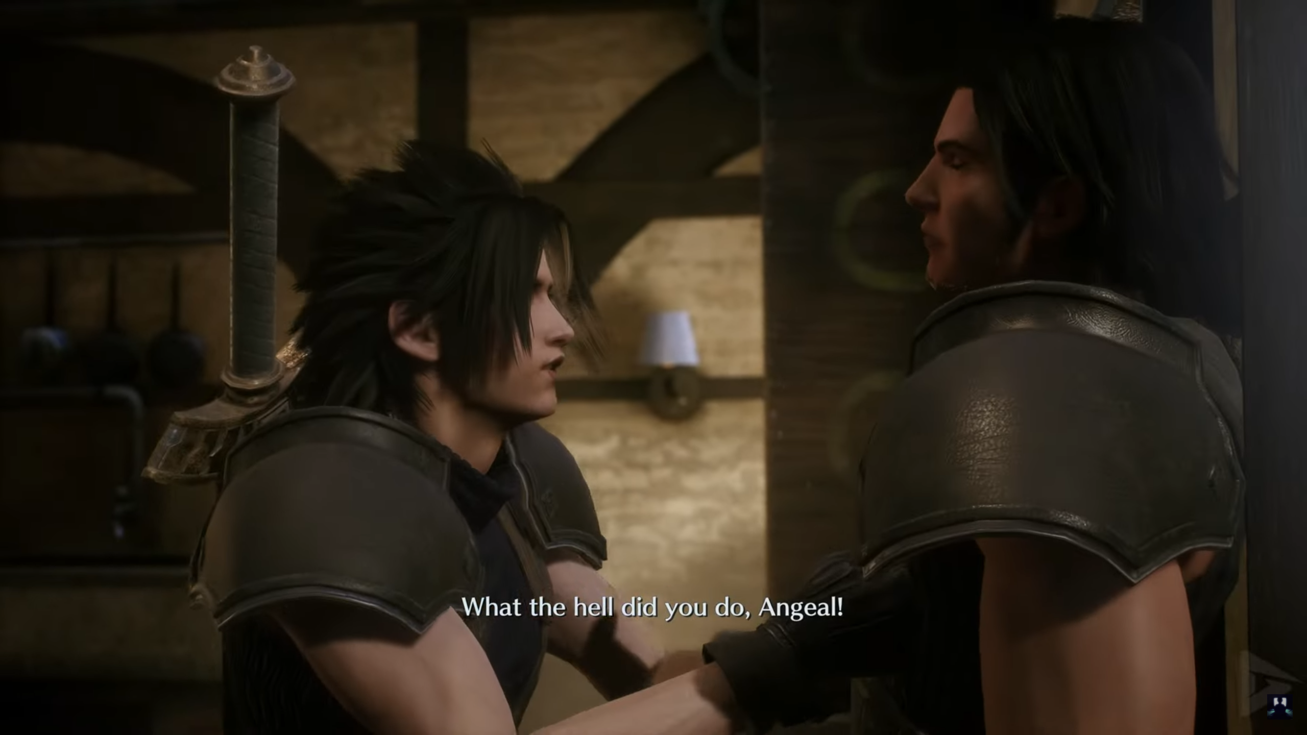 Зак підмічає, що Енджіл не користується своїм великим мечем (Buster sword) на що той каже, що він ним дорожить і не хоче, щоб той зіпсувався.