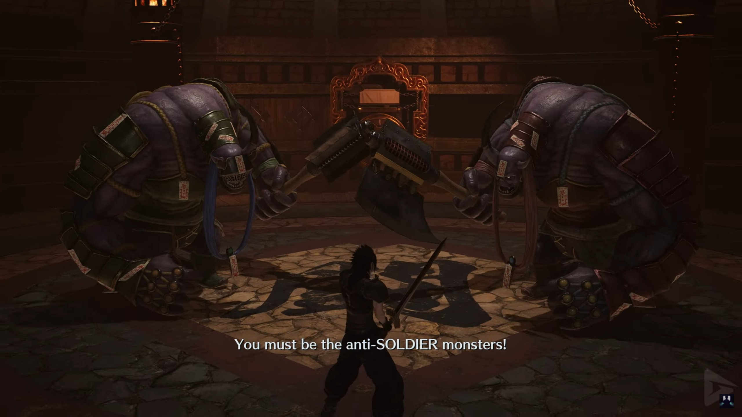 Це конфузить, бо Зак - лояльний Шинрі і є її військовим (хоч і не рядовим, а СОЛДАТОМ - елітним бійцем), але згодом стає зрозуміло, що це було VR тренування (оце технології). В кінці тренування Зака майже не вбиває VR-клон Сефірота, але на допомогу приходить наставник Зака - Енжіл Ховлі (Angeal Hewley). Енжіл щось бурчить про те, як важливо бути героєм і мати свої мрії - та честь, на що Зак відповідає мовчазними роздумами.