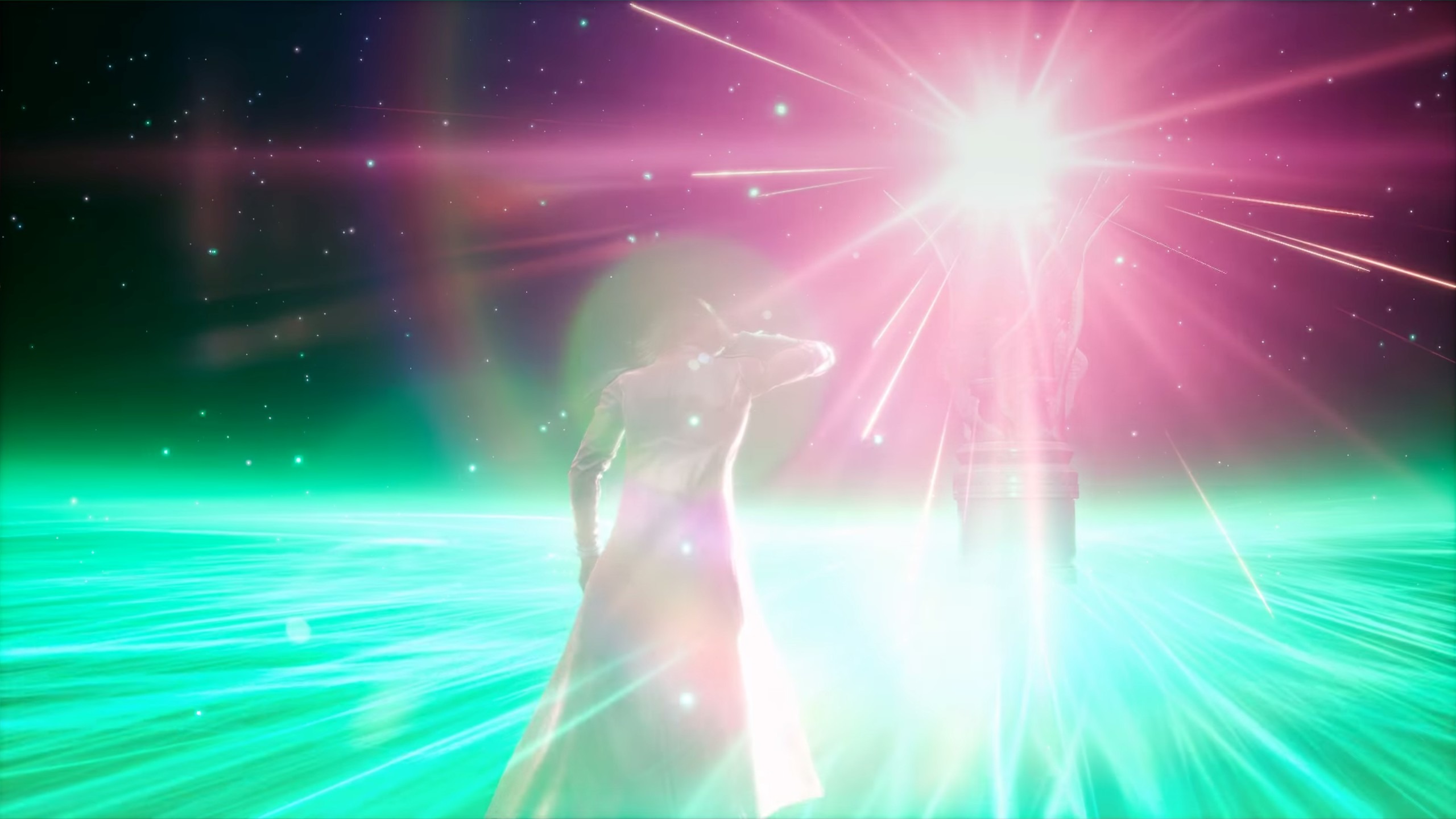 Зак об'єднує всі матерії та проходить до великої зали зі статуєю та Дженезисом.