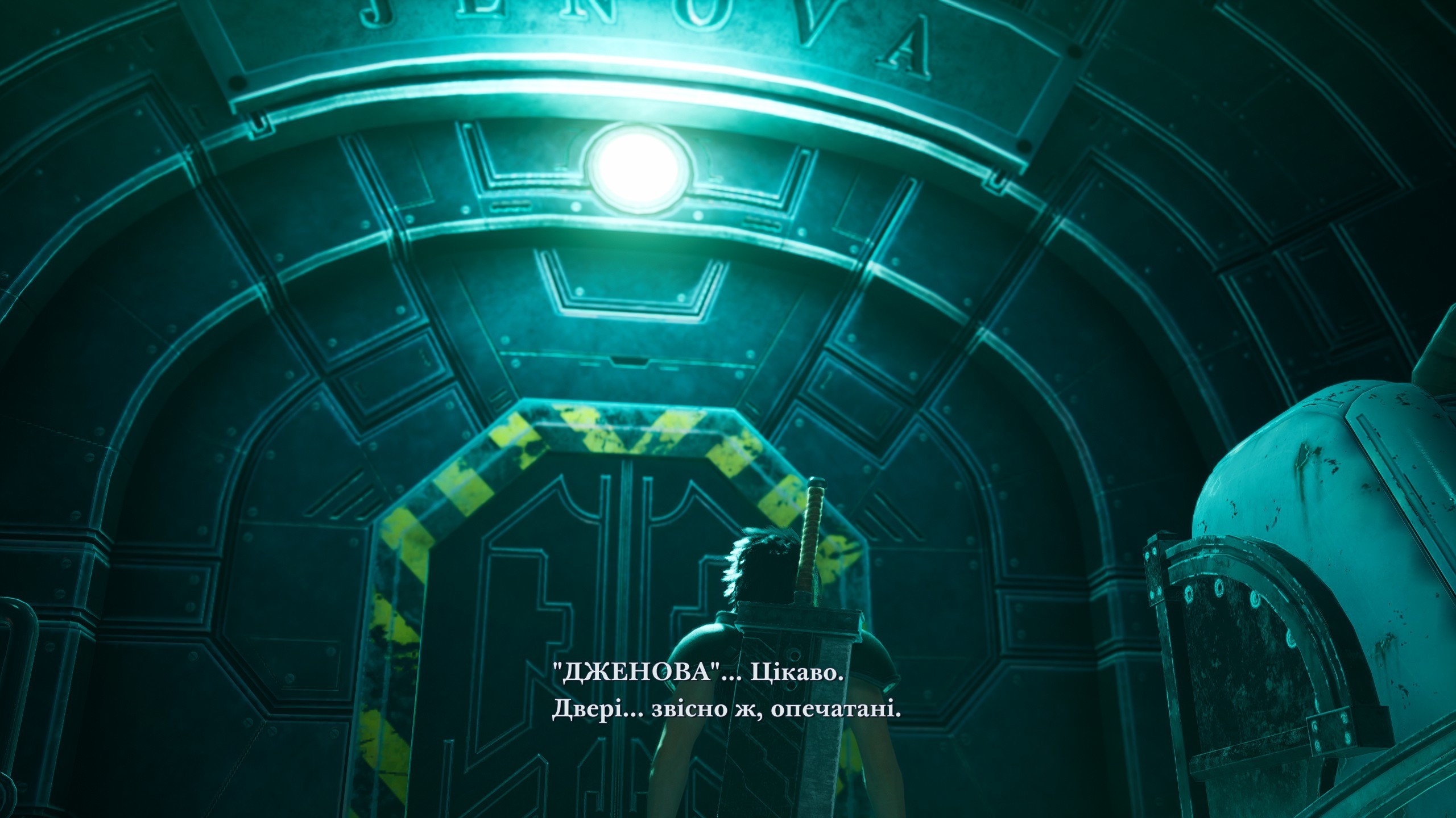 На дверях в реакторі викарбований надпис "ДЖЕНОВА". Сефірот знаходить корінь проблеми непрацюючого реактора - він знаходить монстрів в капсулах.