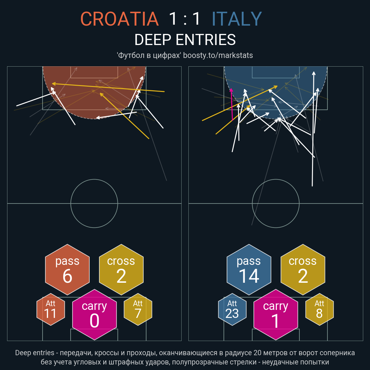 35 успешных передач из 38 попыток (1 под удар, 2 с продвижением, 13 на трети соперника)