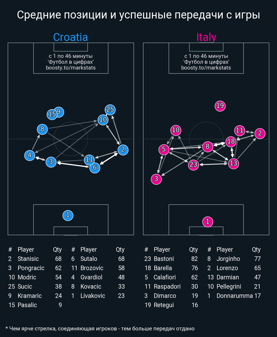 74 успешных передач из 82 попыток (1 под удар, 8 с продвижением, 3 на трети соперника)