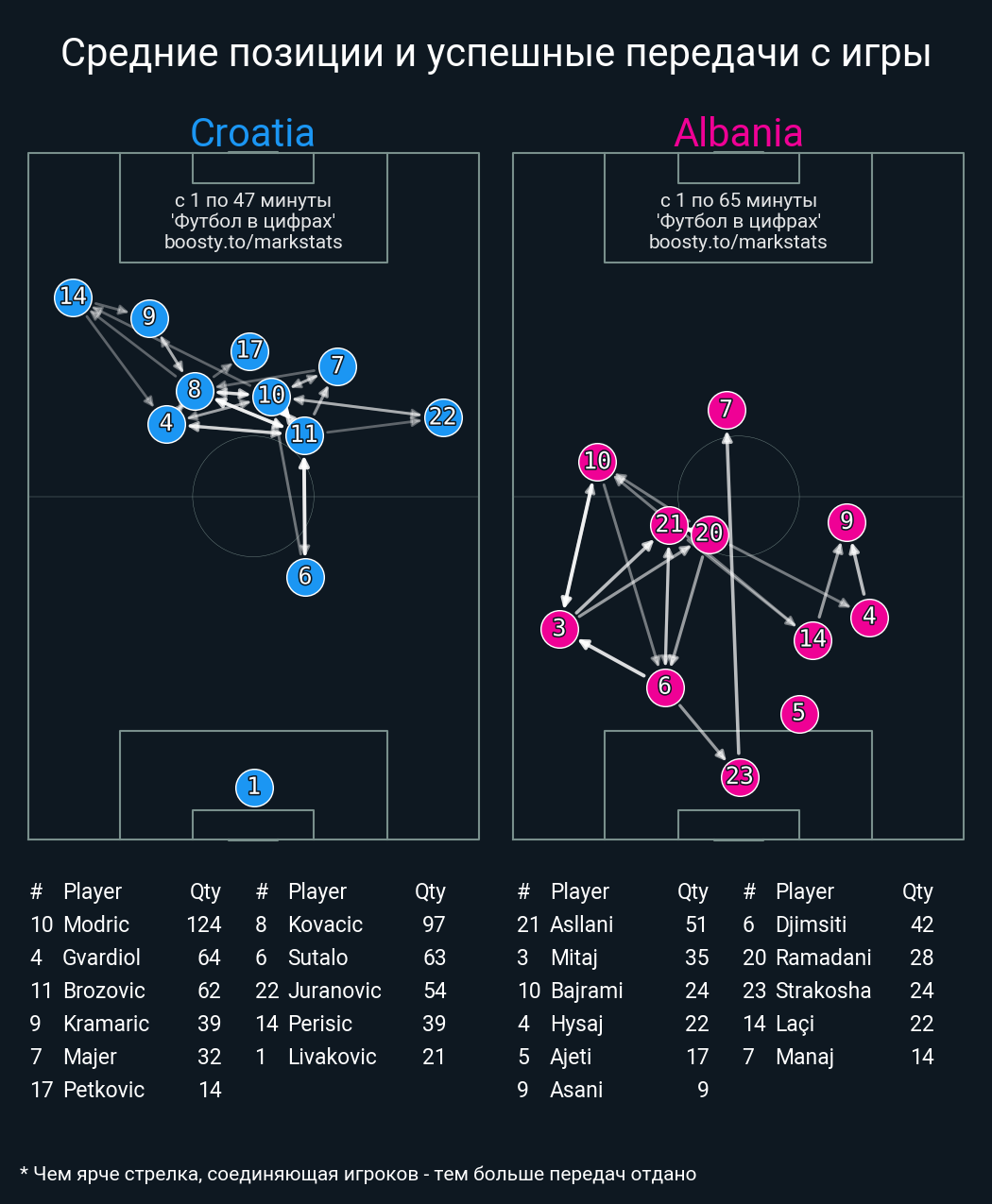 109 успешных передач из 126 попыток (2 под удар, 7 с продвижением, 32 на трети соперника)