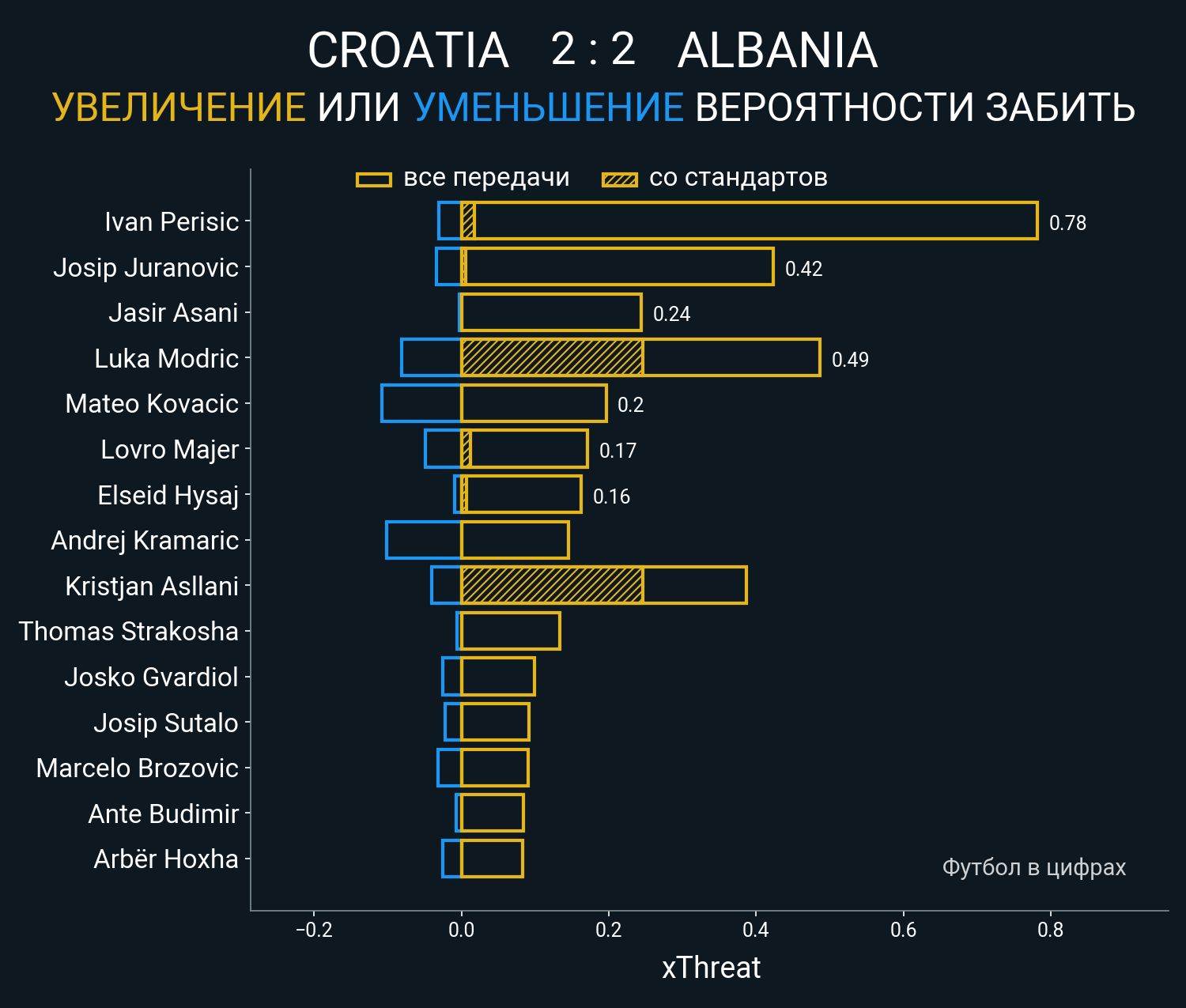 0.24 очка xT (+0.25 со стандартов)