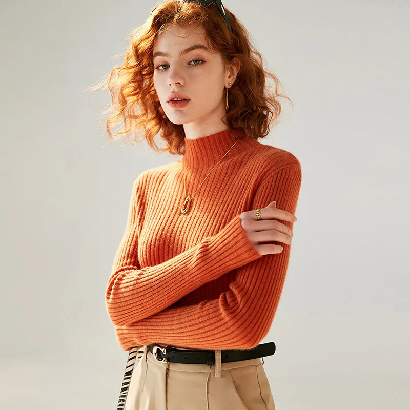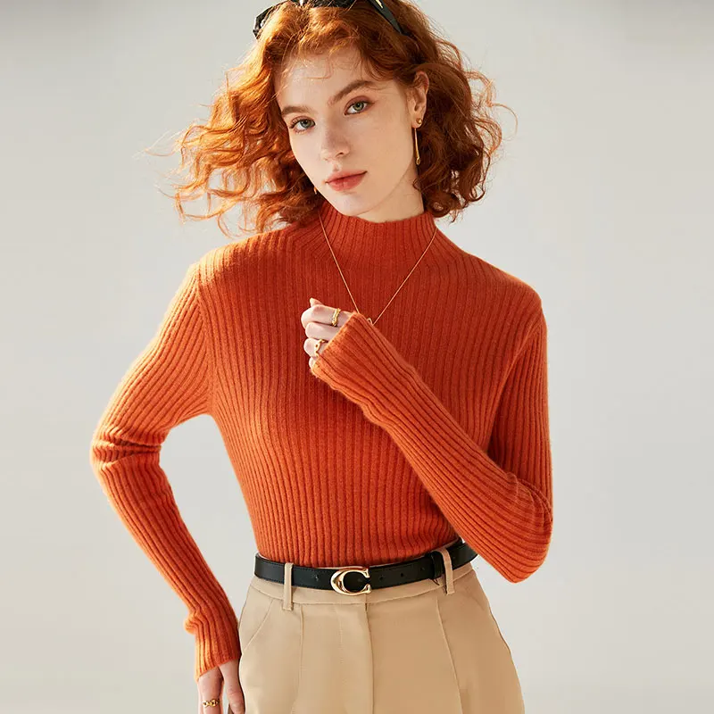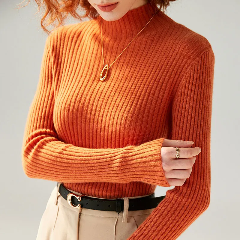 100 pure wool sweater womens half turtleneck hollow loose knitted bottoming sweater cashmere knitted sweater autumn and winter p 10 10