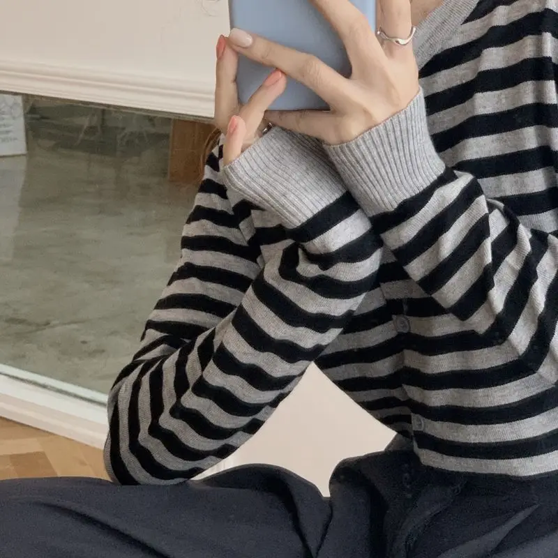 «Cropped Sweaters Women Fall Trendy Basic Long Sleeve Soft Striped Ladies Knitwear Single Breasted Woman Cardigans Vintage» по лучшей цене на рынке! Всего за 8$ (760рублей)