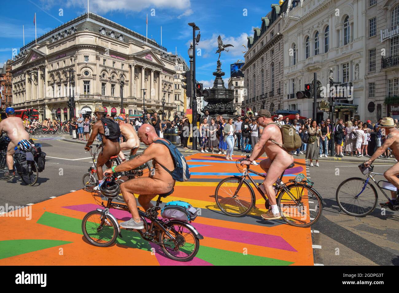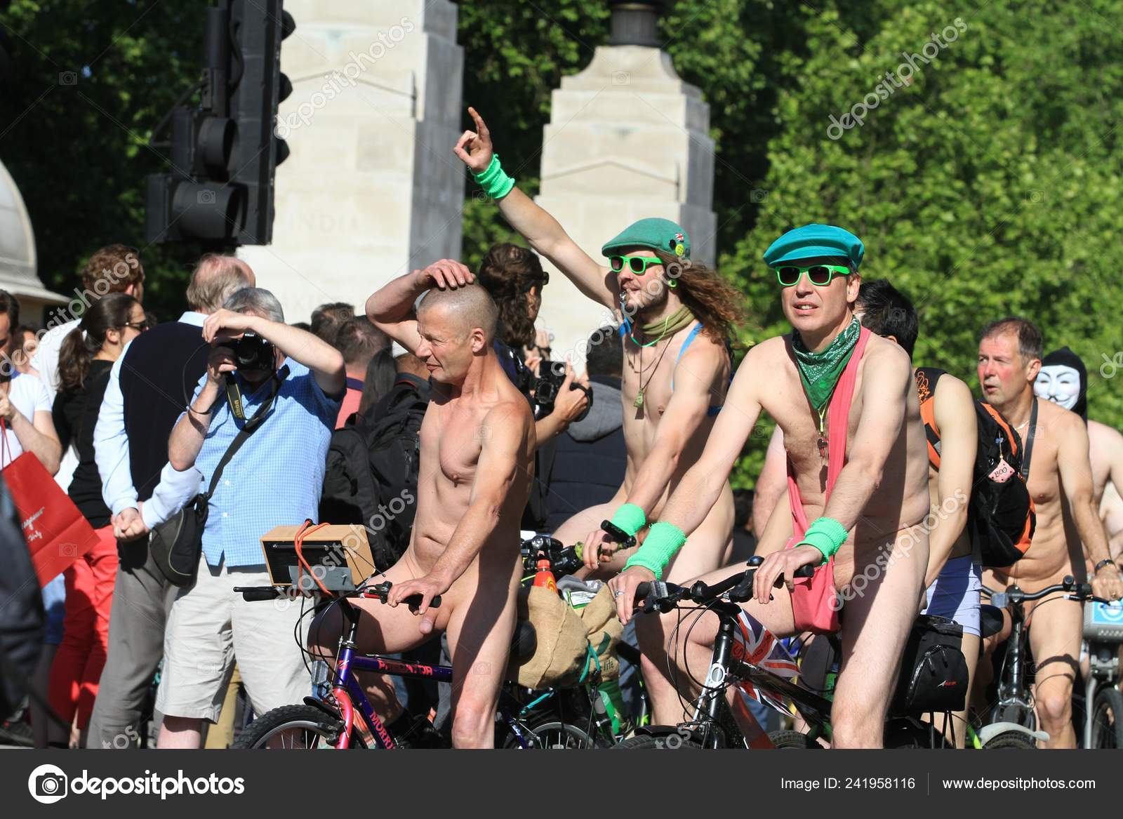 Crowd Looking At Nude Bicyclist