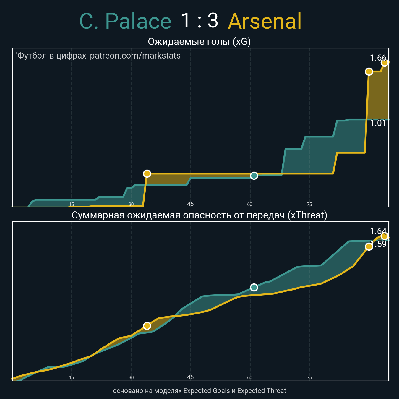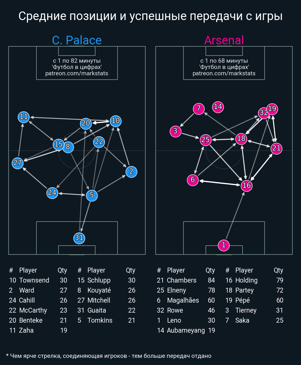 Футбол в цифрахСтатистика матча Crystal Palace - Arsenal