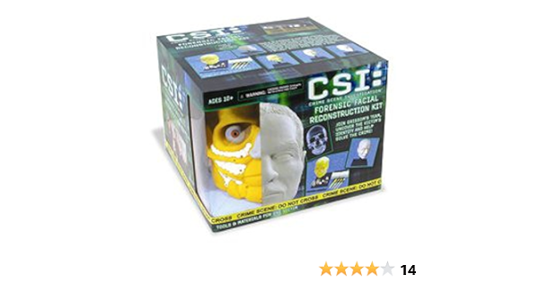 Special price exclusive toys r us CSI crime scene investigation forensic facial reconstruction kit includes plastic skull molded eyeballs molded ears plasticine model ling material for skin facial accessories reconstruction sculpting tools molded pegs to give skin depth rolling pin rolling tray with 3 levels for skin thickness work stand with tray every ting you need to reconstruction identify the victim original only on rare .