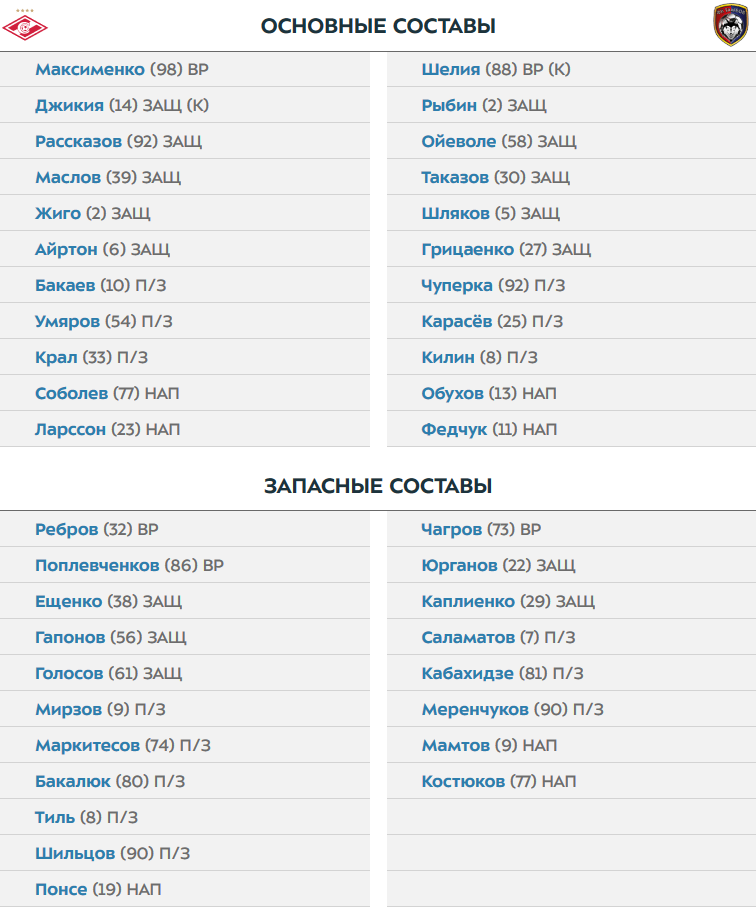 Цска краснодар стартовые составы