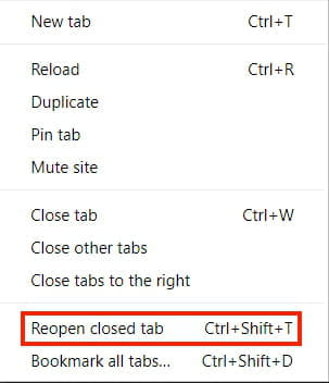 Ctrl shift t в браузере