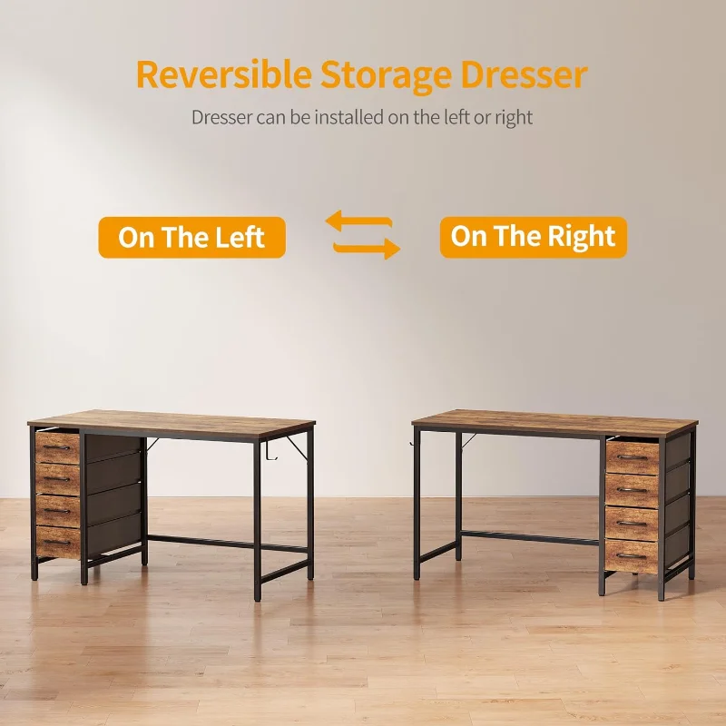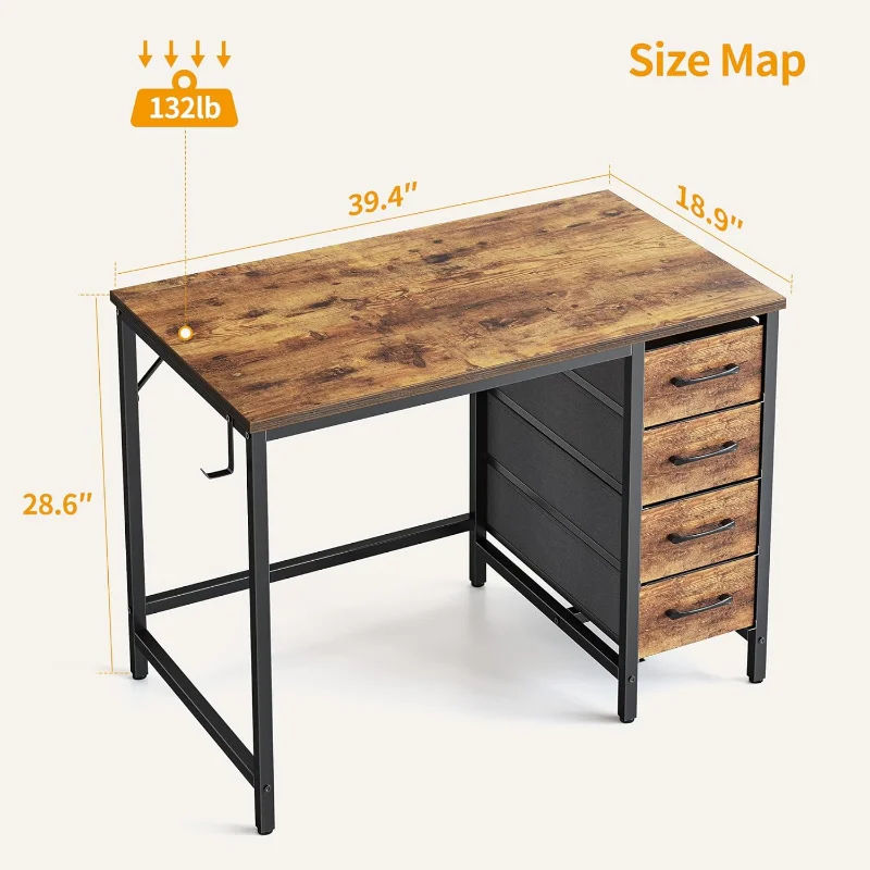 "CubiCubi 40 Inch Computer Desk with 4 Drawers, Home Office Small Desk with Storage, Modern Study Writing Desk, Rustic Brown" * Buy Now With Free Shipping Just For $50