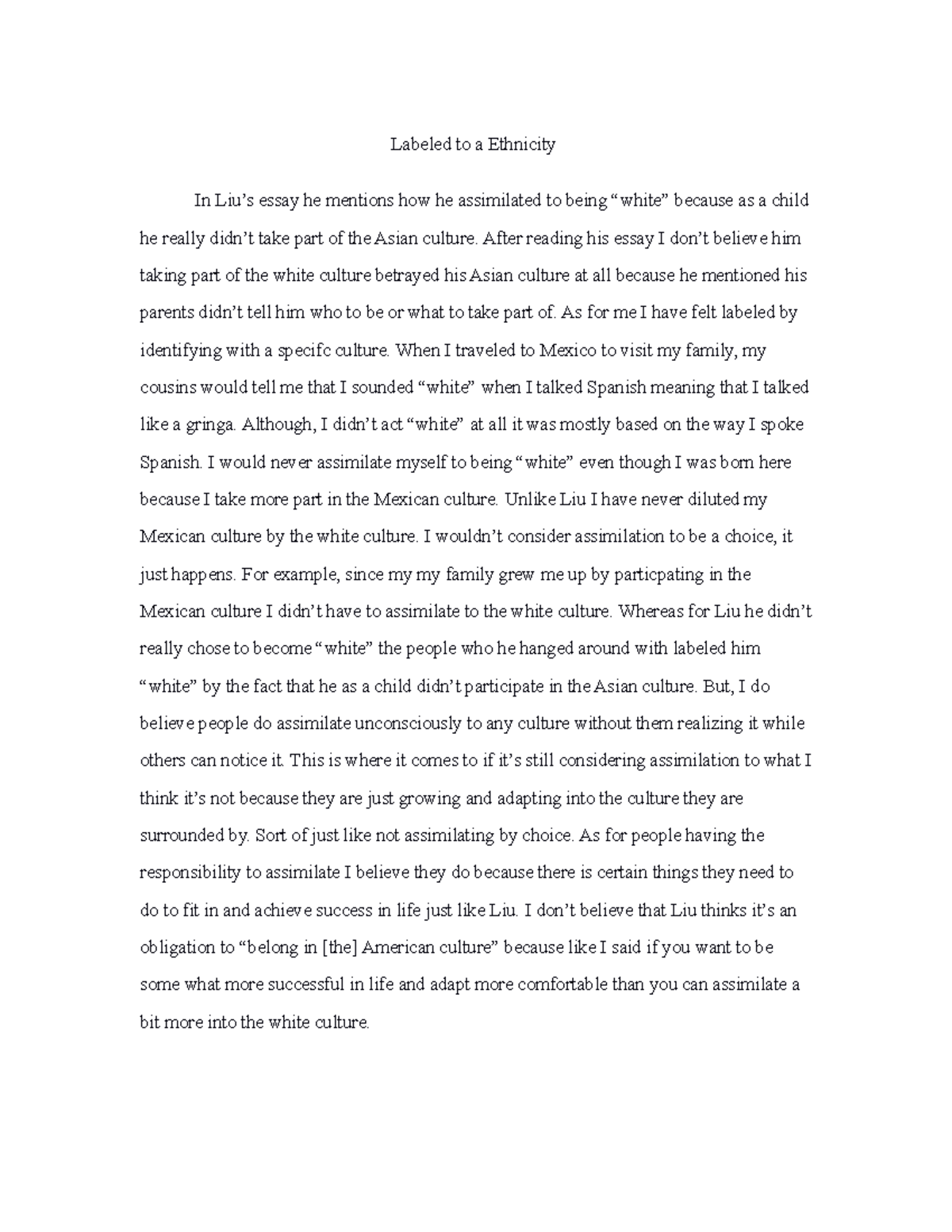 Cultural Assimilation - Essay Paper
