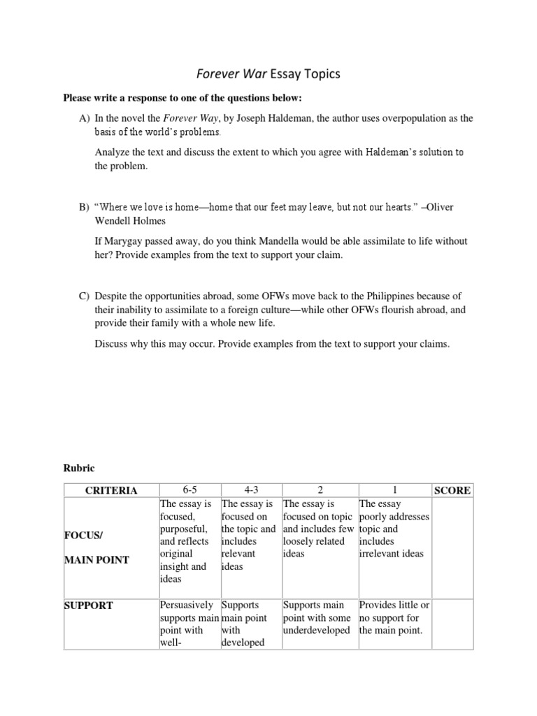 Sample Essay Rubric Middle School