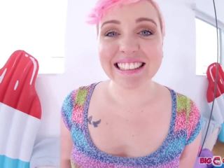 Cum covered tongue and gulp it with a smile