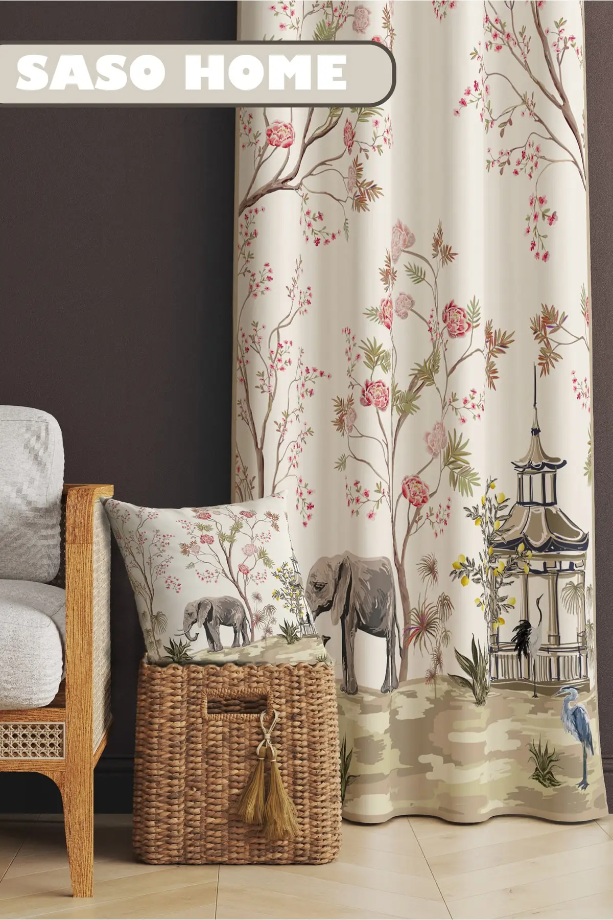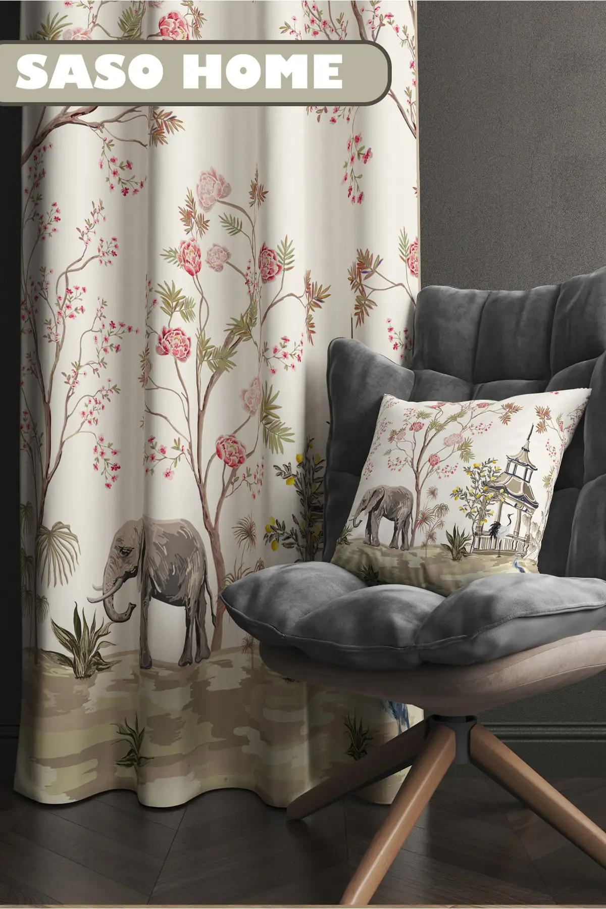 ekCJNRVvMPHere you can buy Curtain Cream Elephant And Roses Patterned 140 X 270 Cm Digital Printed Velvet Background Single Sash with free delivery to your post office.