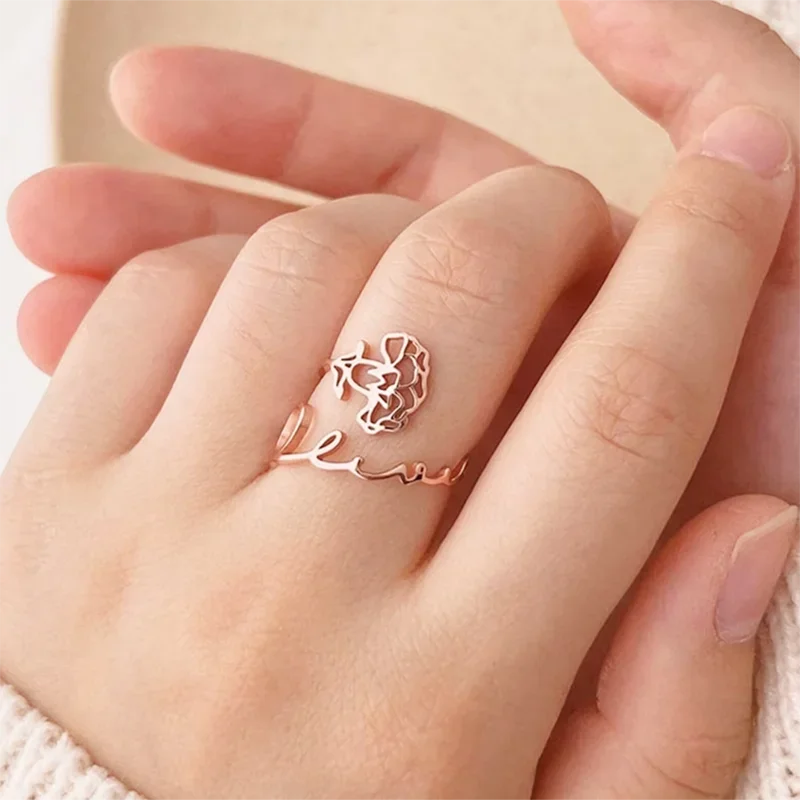 "Custom 12 Month Flower Name Ring High-end Stainless Steel Jewelry Open Personalized Adjustable Ring Birthday Gift Couple Rings" * Buy Now With Free Shipping Just For $4