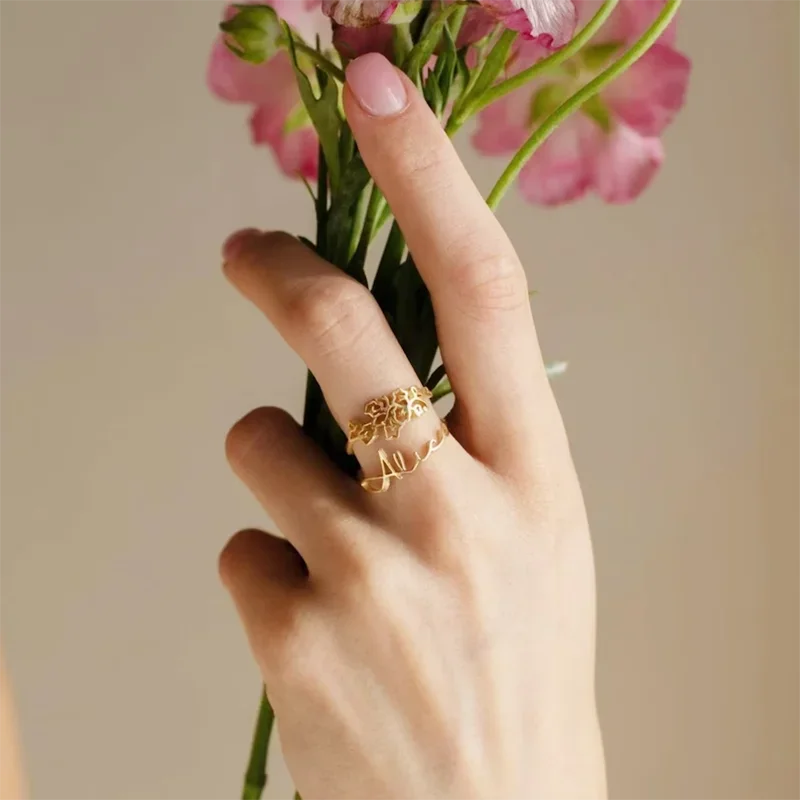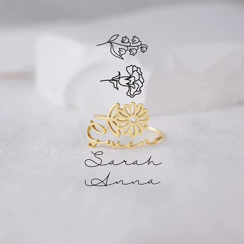 WQXWfvSQHere you can buy Custom 12 Month Flower Name Ring High-end Stainless Steel Jewelry Open Personalized Adjustable Ring Birthday Gift Couple Rings with free delivery to your post office.