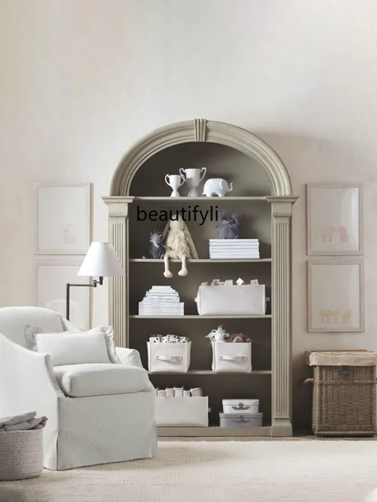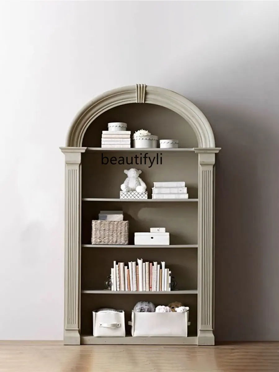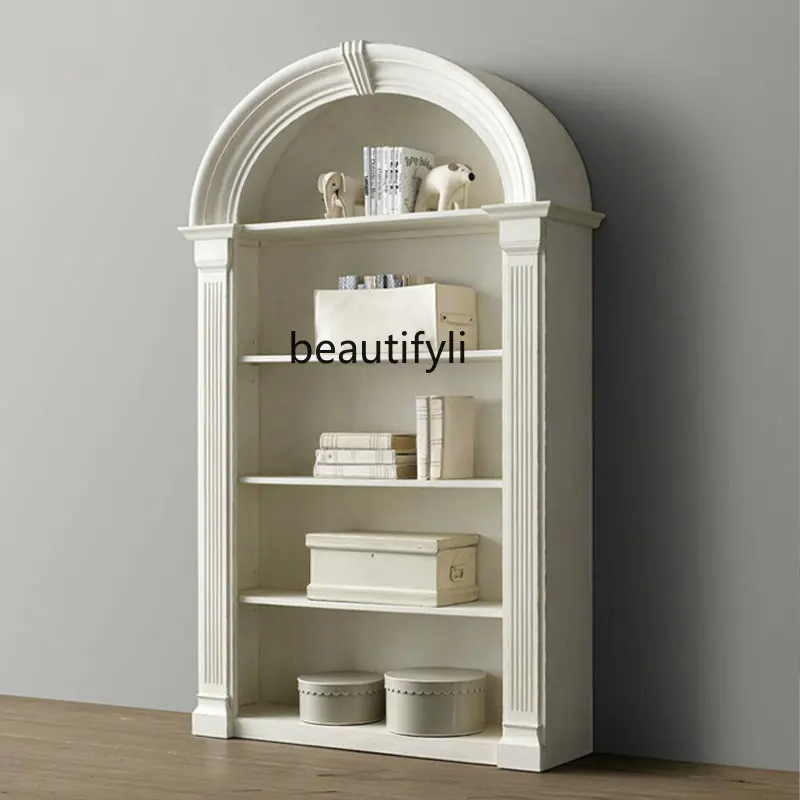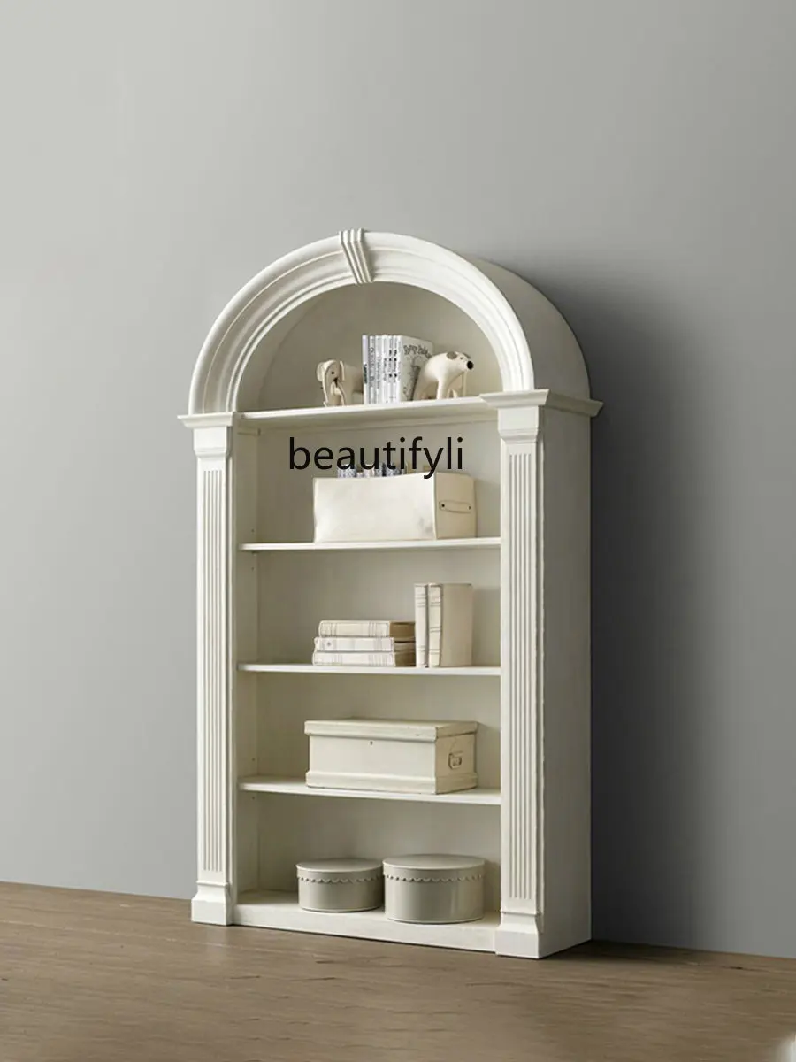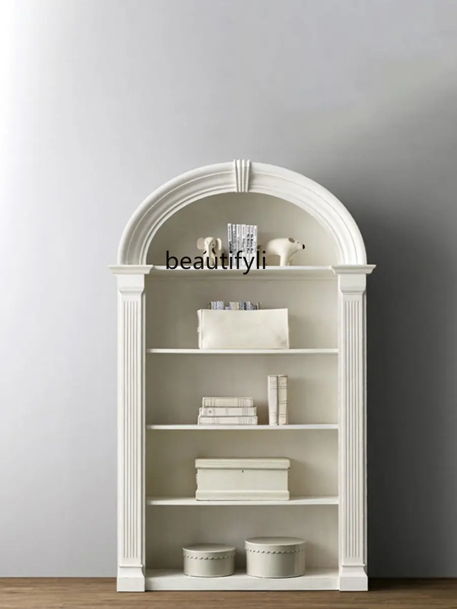 Custom American Retro Semicircle Solid Wood Ivory White Bookcase Study Arch Bookshelf Locker Bookcase Can Be Customized - Купить с бесплатной доставкой