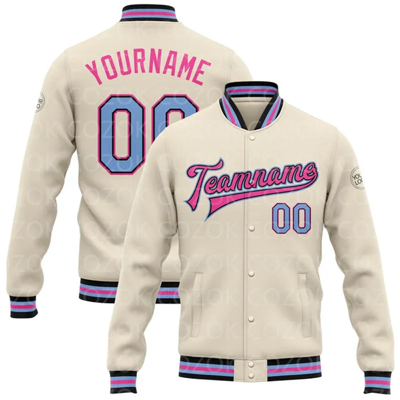 dRrroZwMHere you can buy Custom Cream Pink Color 3D Printed Baseball Button Jacket Bomber Full-Snap Varsity Letterman Jacket with free delivery to your post office.