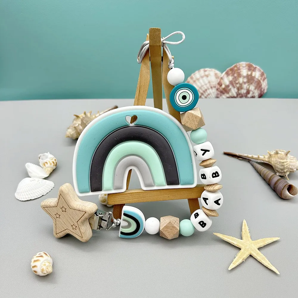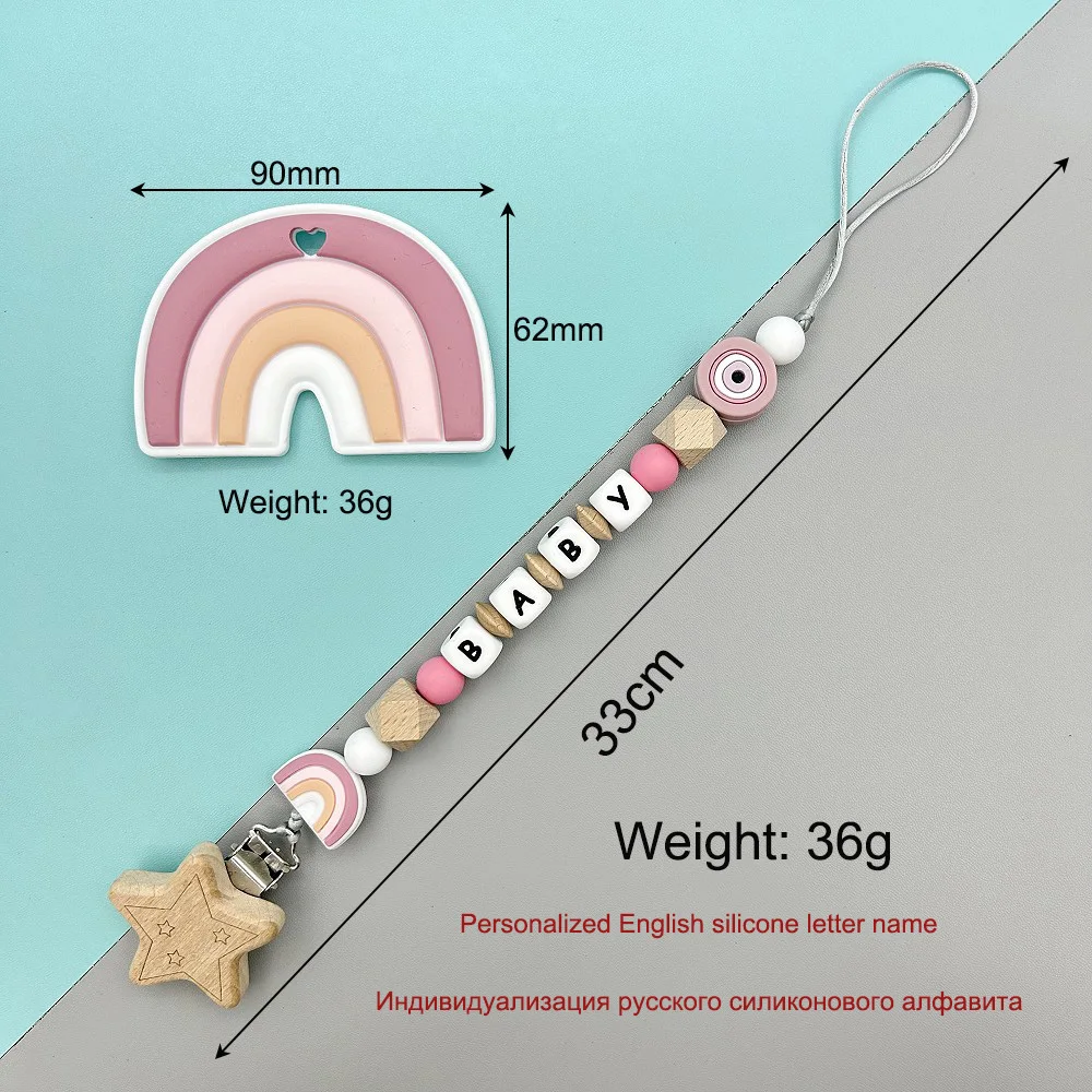 Custom Letter Name Rainbow Pacifier Clips Chain Teether Pendants for Baby Infant Chew Leash Nipple Holder Teether Creative Gifts - Купить с бесплатной доставкой