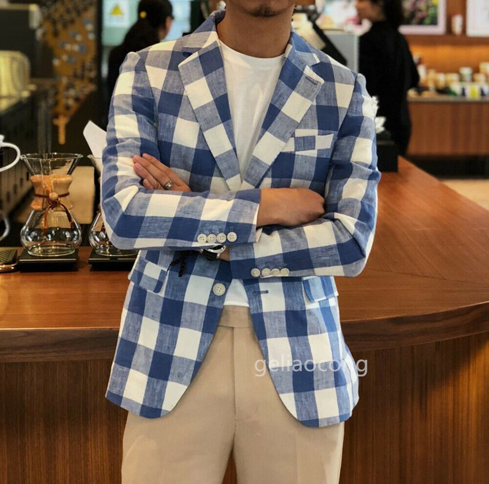 "Custom Made Fashion Blue White Plaid Slim Man Suit Jacket Quality Male Checked Casual Spring Autumn Two buttons Men Blazer" * Buy Now Just For 40$