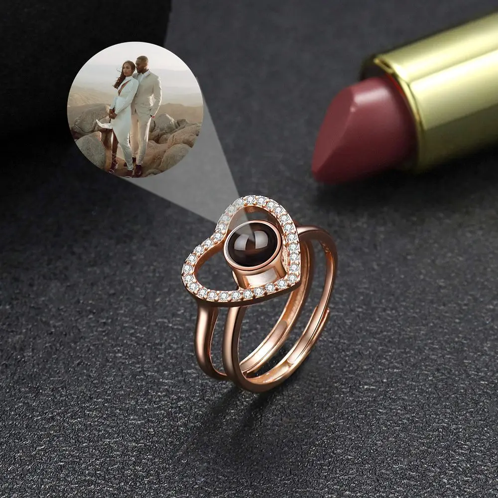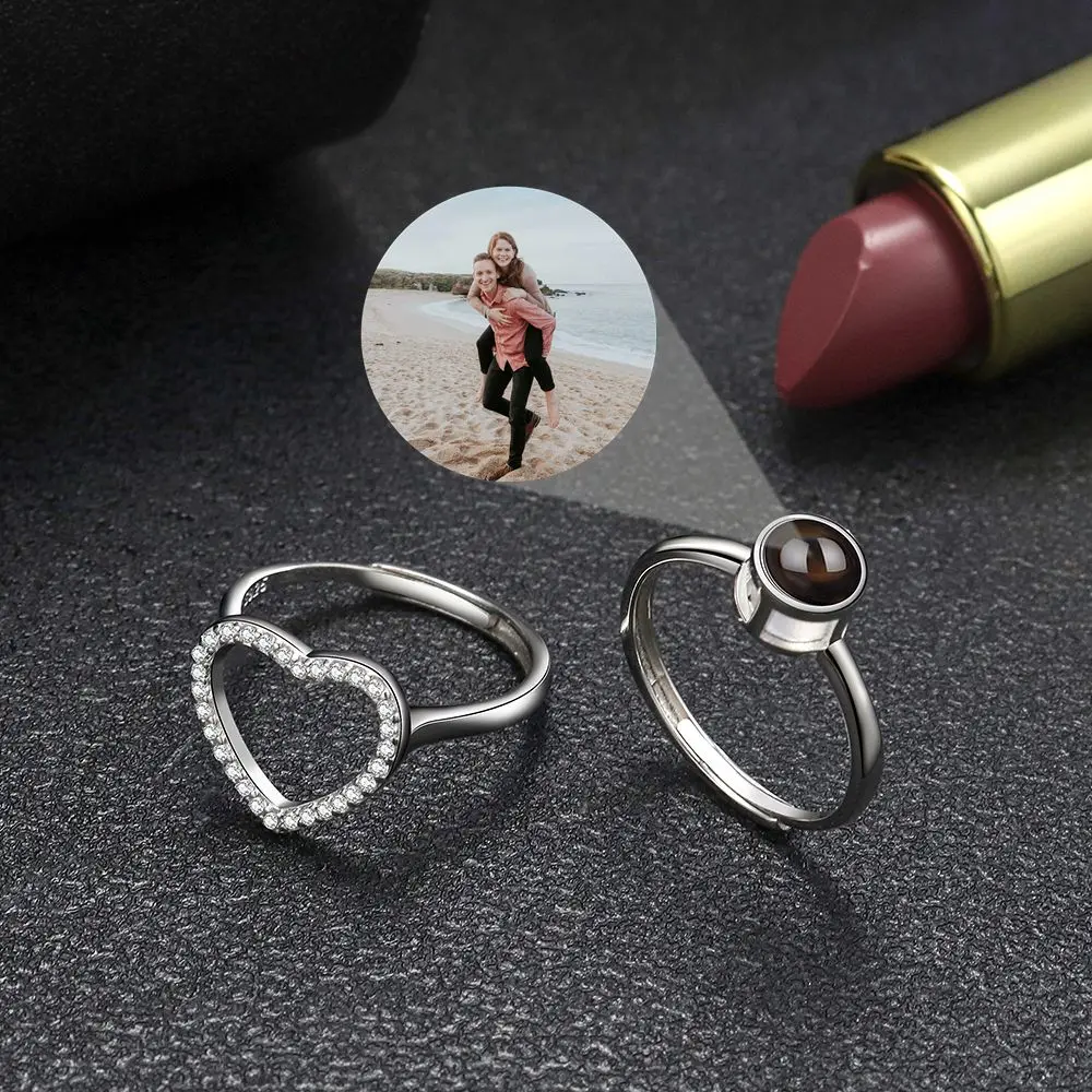 UVjOAOzlvoHere you can buy Custom Photo Rings Projection Photo 925 Sterling Silver Heart Pendent Rings for Women Men Simple Finger Fashion Couple Gift with free delivery to your post office.
