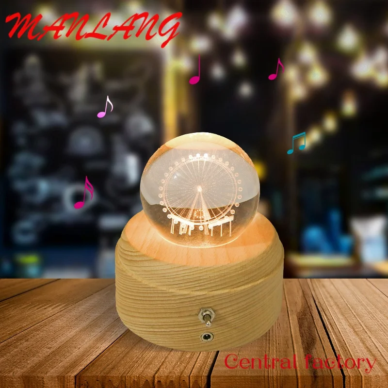 rKBgTGDFHere you can buy Custom Table Desk Lamp LED Wood Base 3D Rotating Crystal Ball Night Light with Music Box for Home Decor with free delivery to your post office.