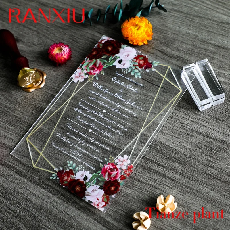 qvFeqXwETFHere you can buy Custom Traditional Transparent Floral PVC Acrylic Birthday Anniversary Wedding Invitation Card Set Custom Design with free delivery to your post office.