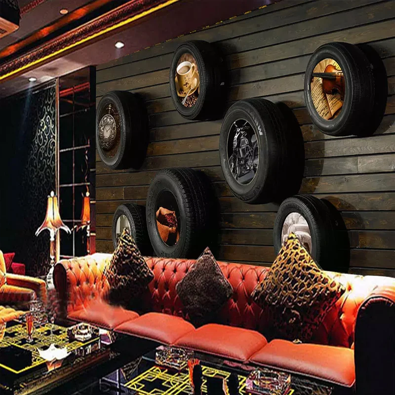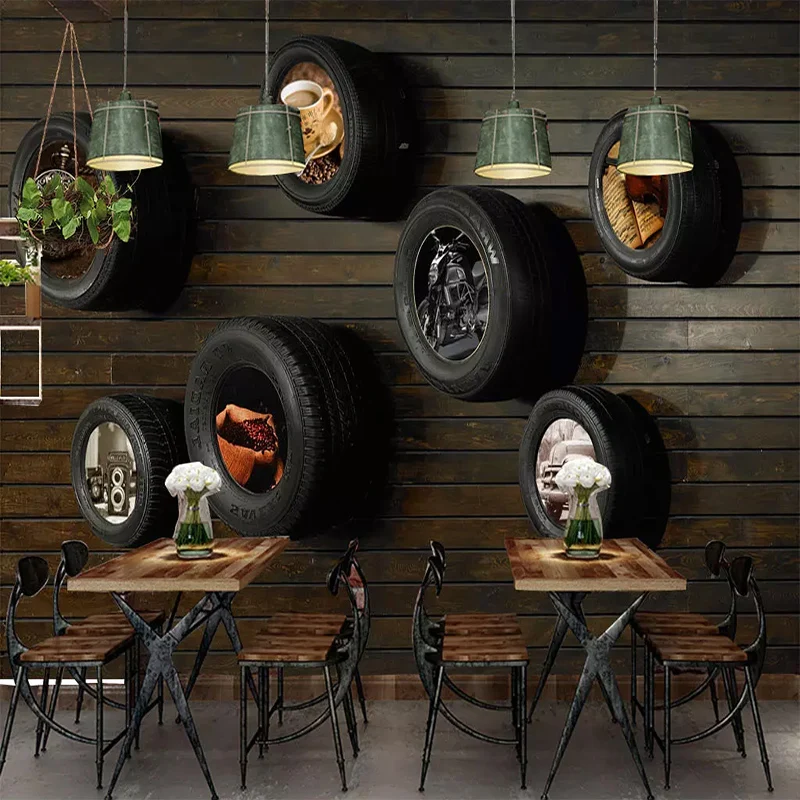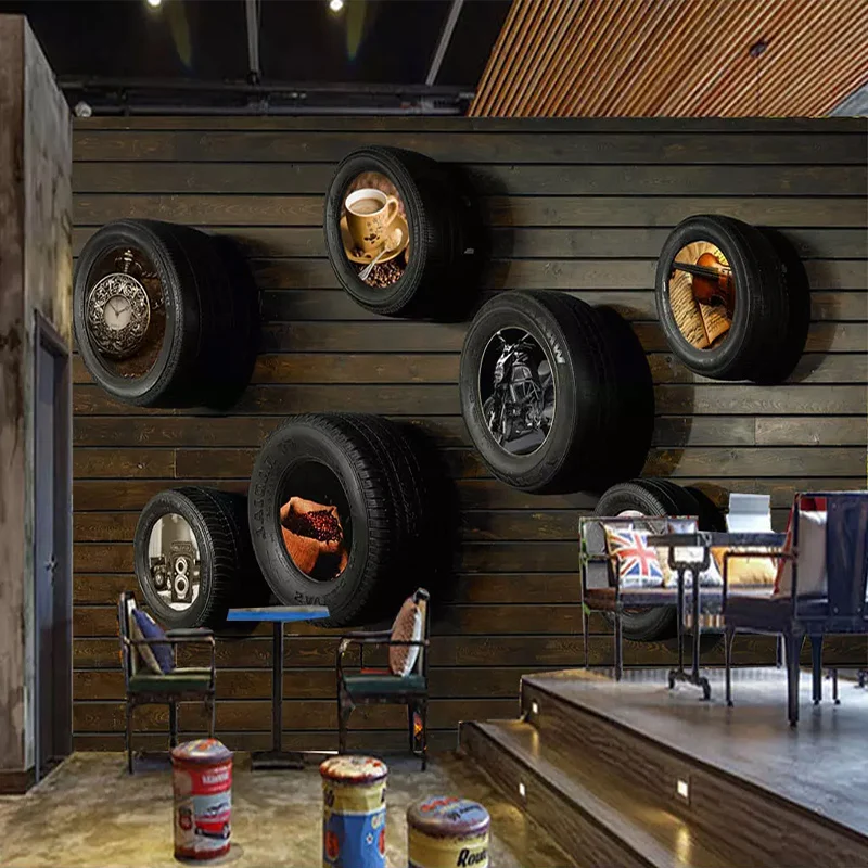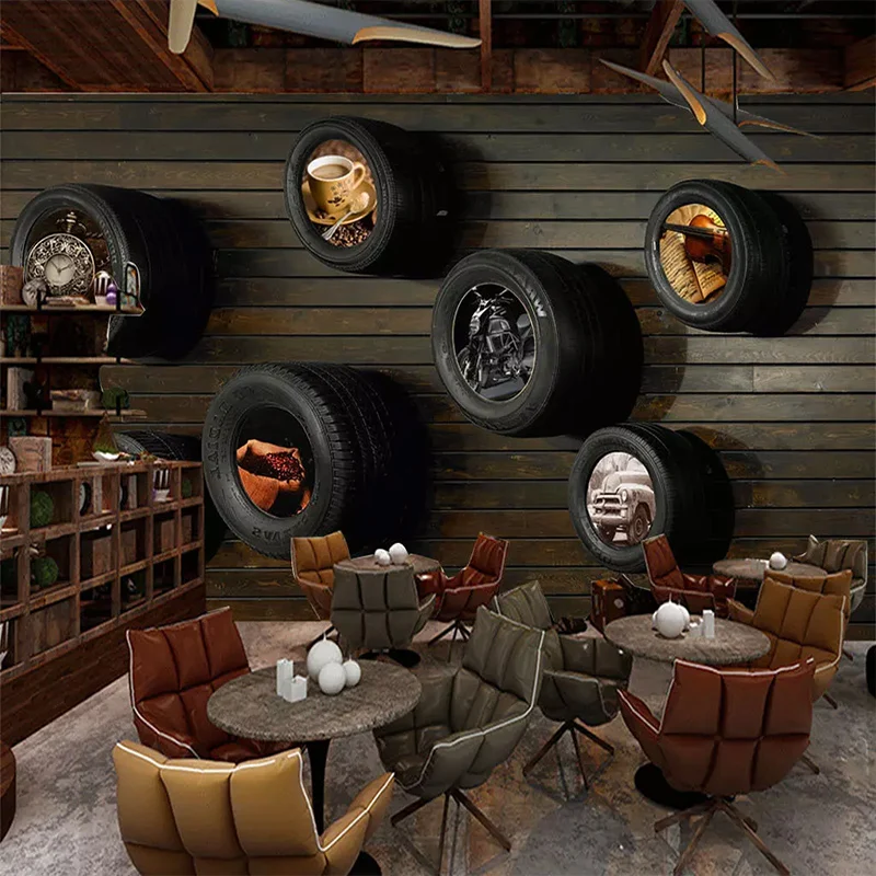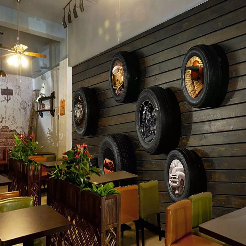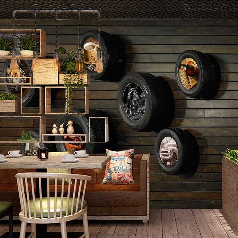 "Custom Wallpapers Nostalgic Car Tire Wood Grain Wall Cloth For Living Room Cafe Wall Home Decor Mural Papel De Parede 3D Fresco" * Buy Now Just For 8$