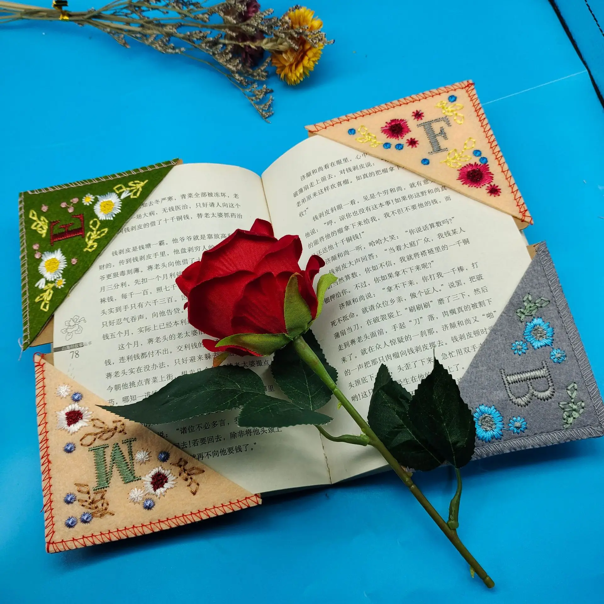 Customization Embroidery Bookmarks Customize English Letters Elegant Felt Flower Corner Bookmark Stationery Gift for Friends - Купить с бесплатной доставкой