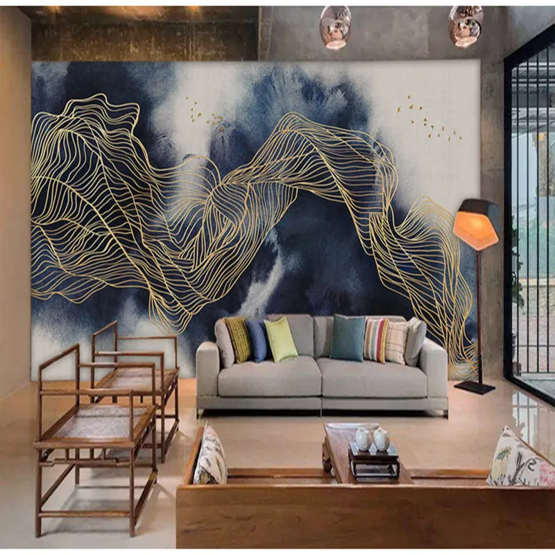 "Customized 3D canvas mural personalized creativity Nordic Blue Gold geometric abstract line business home background wallpaper" * Buy Now Just For 9$