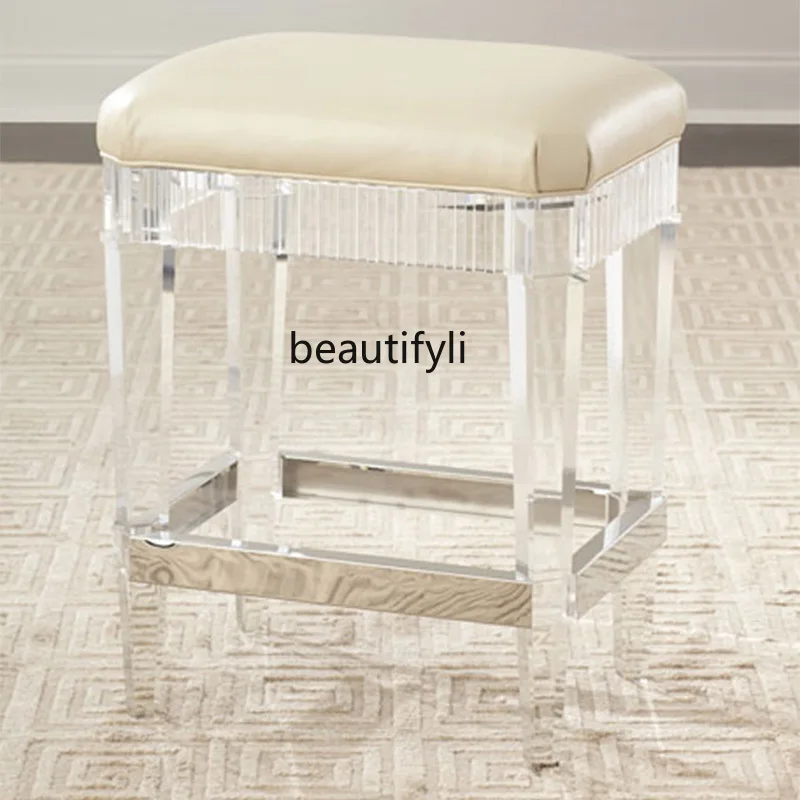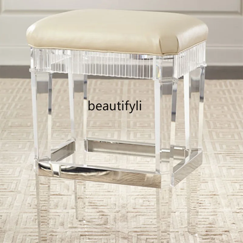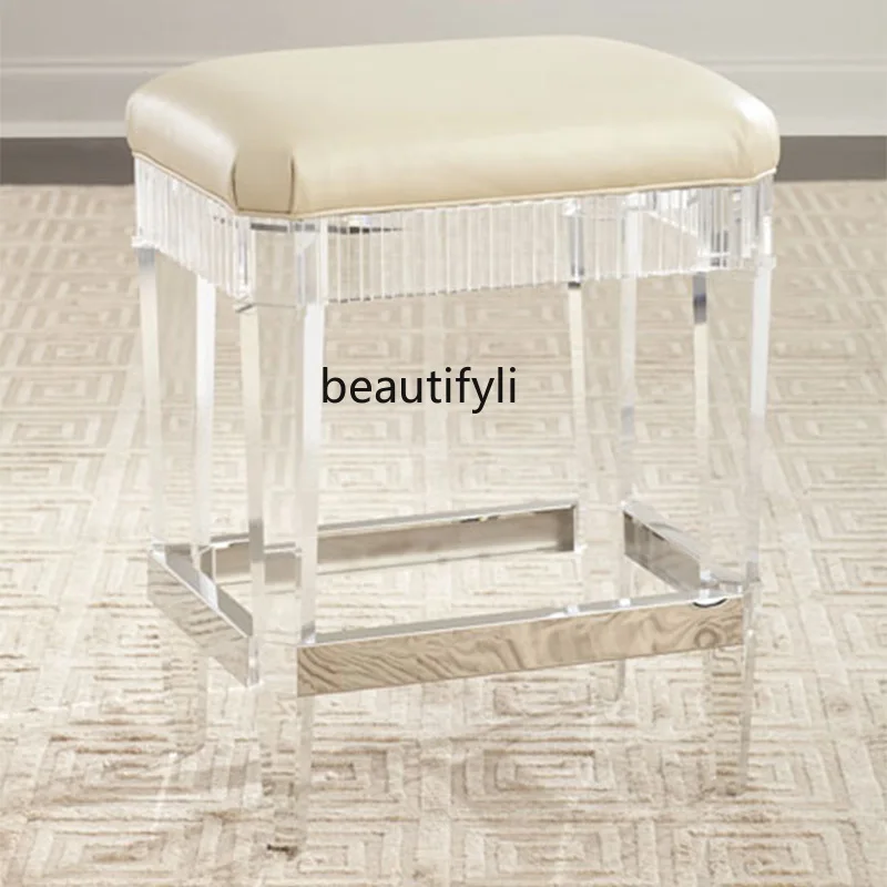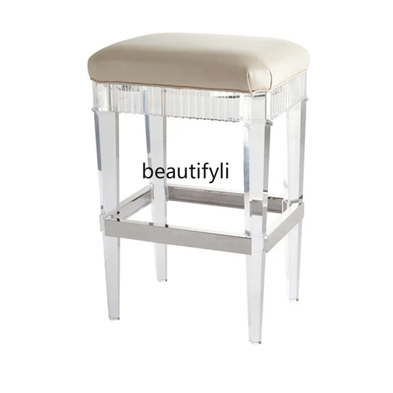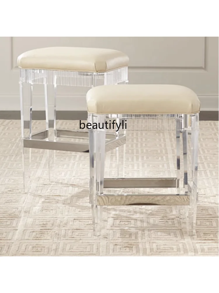 VrhAdpeneFHere you can buy Customized Acrylic Stool Simple Modern Light Luxury Type Leather Cushion Stainless Steel Edge Transparent Glass Bar High Stool with free delivery to your post office.