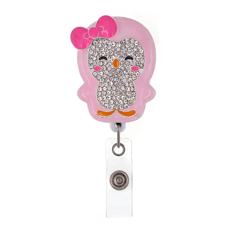 Customized Animal Shape Cute Penguins Rhinestone Retractable Badge Holder Reel - Купить с бесплатной доставкой