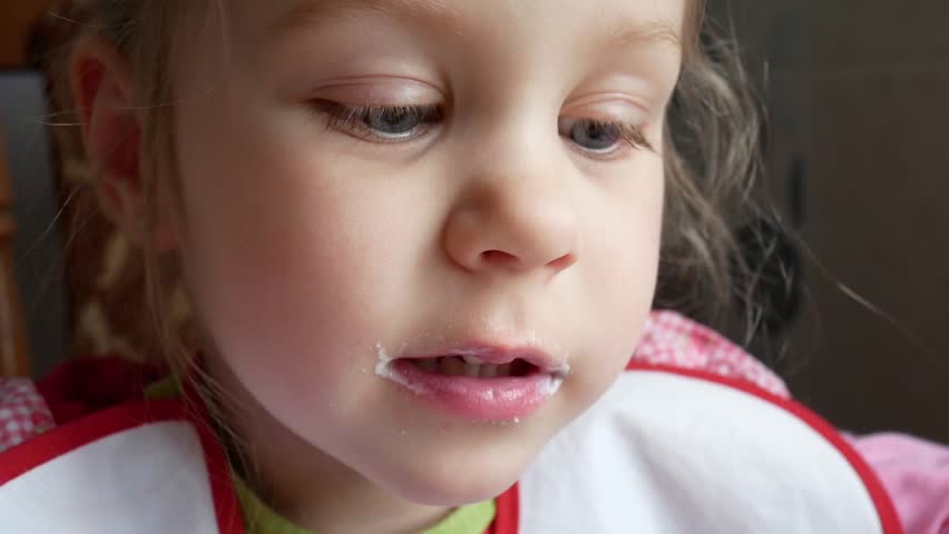 Cute Blue-eyed Girl Licking An Stock Footage Video (100% Royalty-free) 3093724