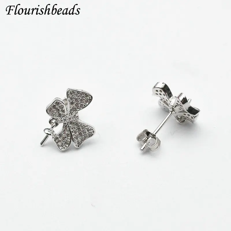"Cute CZ Clover Shape Pin Style Stud Earring Hooks Clasps Fit Half Hole Pearl Stone Beads Dangle Earrings Making Accessories" * Buy Now Just For 64$
