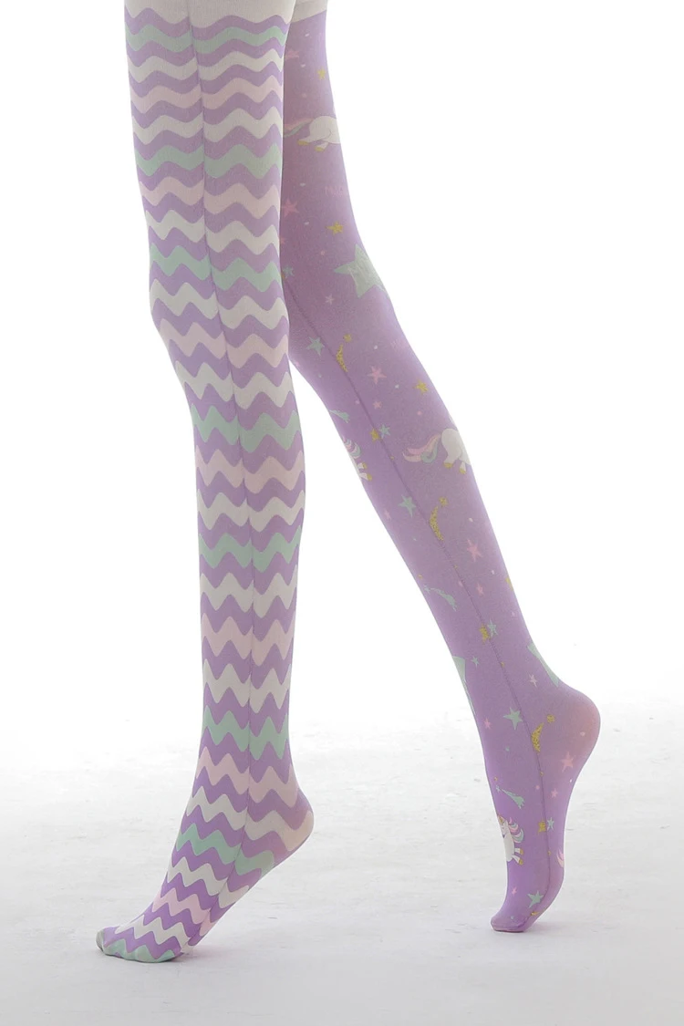 "Cute Cartoon Printed Lady Tights Purple Velvet AB Style Kawaii Unicorn Pattern Lolita Personality Corrugated Asymmetrical Tights" * Buy Now Just For 2$