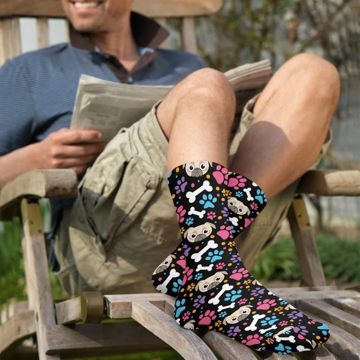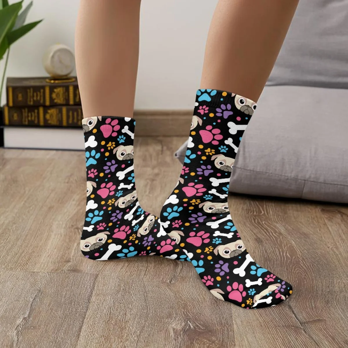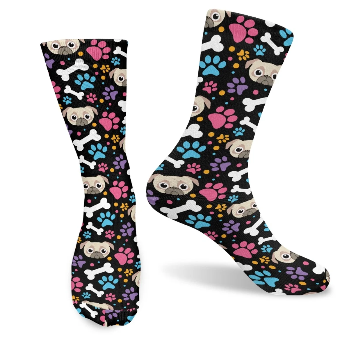KBoQmNuahHere you can buy Cute Cartoon Pug Dog Paw Bone Pattern Comfortable Socking Sweat Absorbent Breathable Indigenous Deodorant Soft Sock Custom Image with free delivery to your post office.