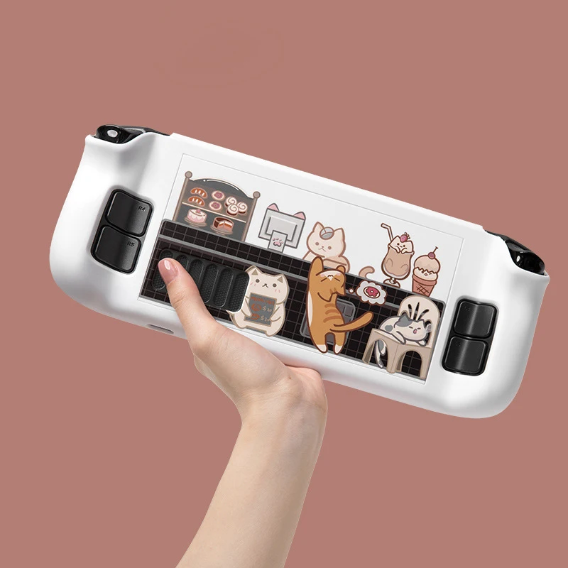 Cute Cat Cafe Case For Steam Deck Game Console Hard PC Cover Protective Anti-Scratch Non-Slip Shell Case for Valve Accessories - Купить с бесплатной доставкой