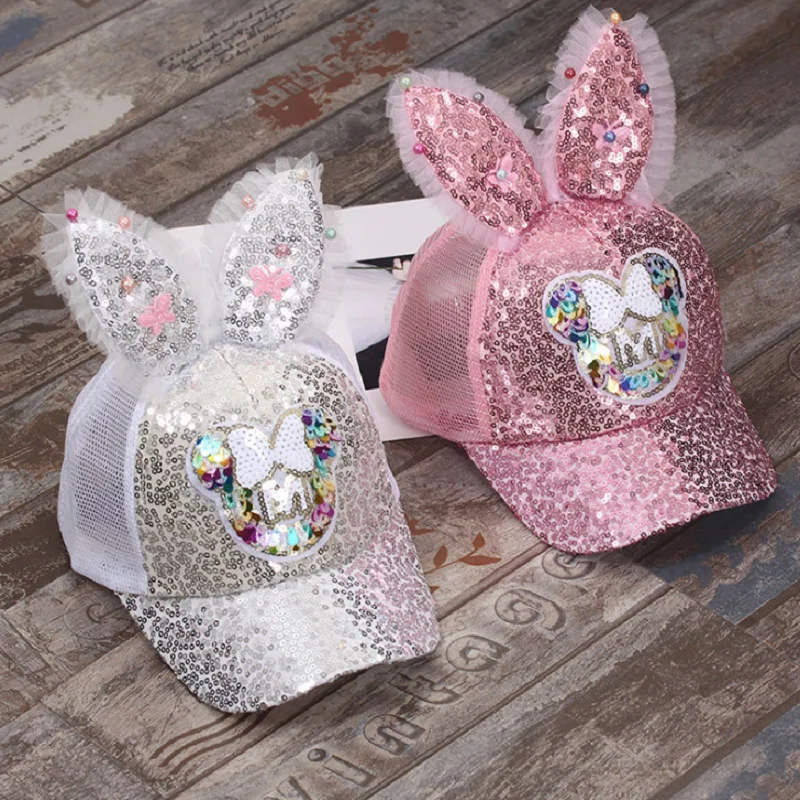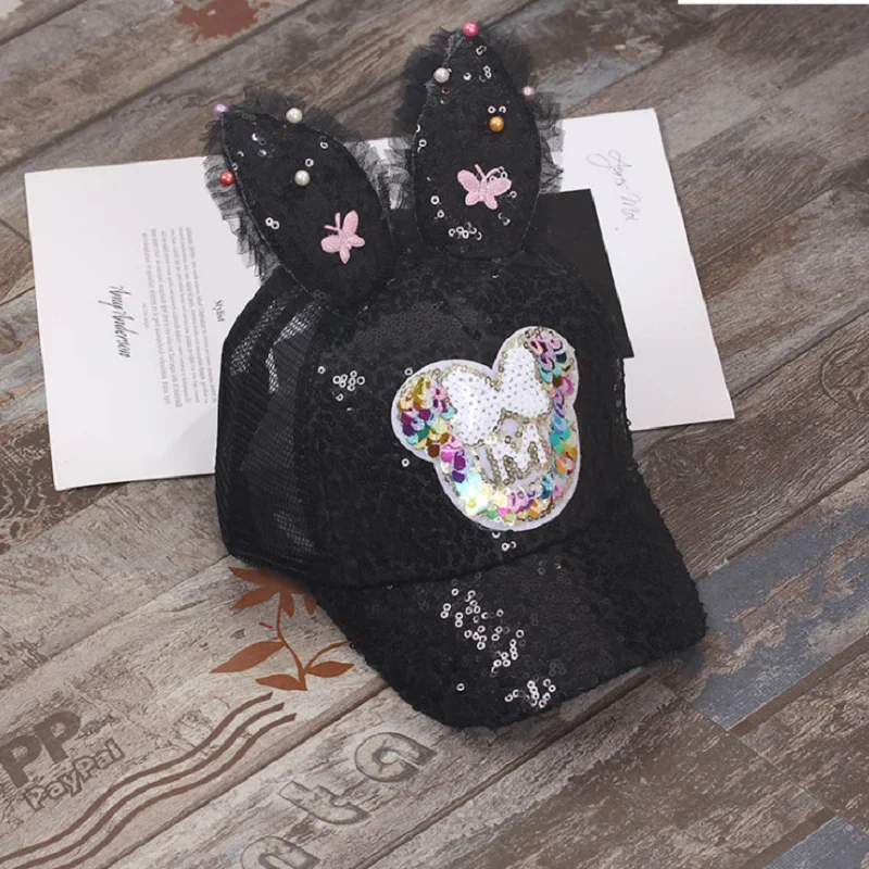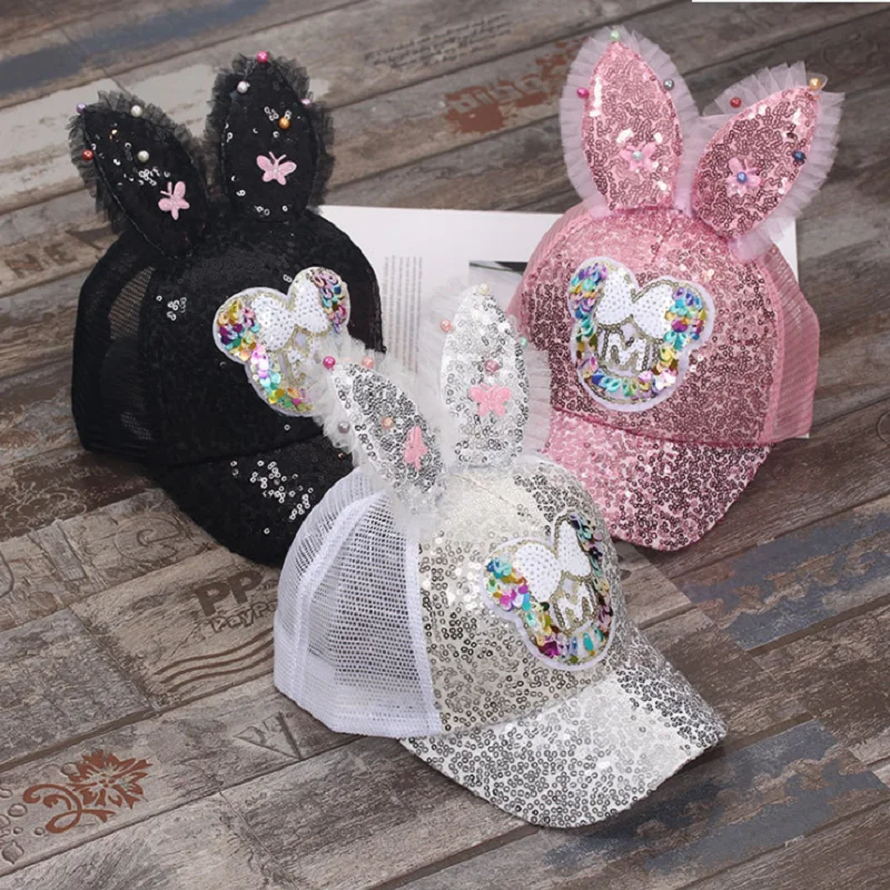 "Cute Children'S Net Cap Spring And Summer Children'S Baseball Cap Girls Stretch Hip Hop Hat Rabbit Ears Pearl Big Bow Children'S" * Buy Now Just For 4$