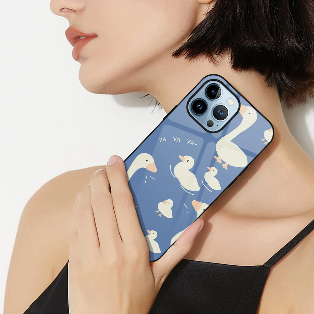 «Cute Duck Cat Tempered Glass Protection Shell for iPhone 14 13 12 11 Pro Max Mini XS XR X 7 8 6S Plus SE 2022 Luxury Phone Case» по лучшей цене на рынке! Всего за 4$ (380рублей)
