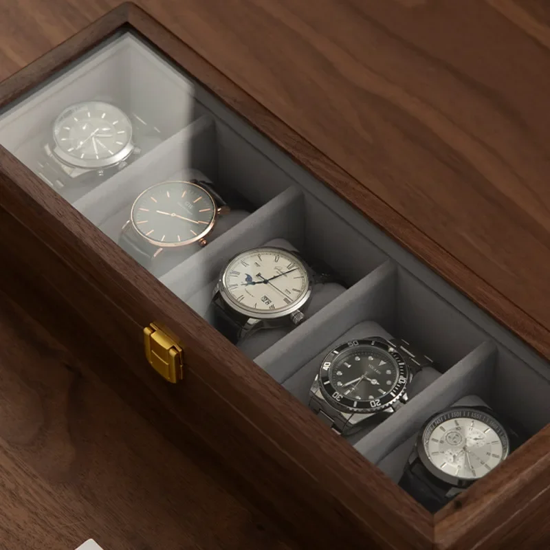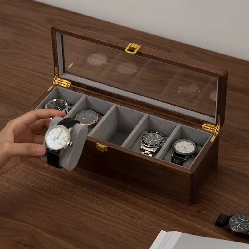 vNQtDWzYHere you can buy Cute Pillow Solid Wood Men's Watch Storage Box High-end Precision With Cover Transparent Tempering Glass Visible Display Box with free delivery to your post office.