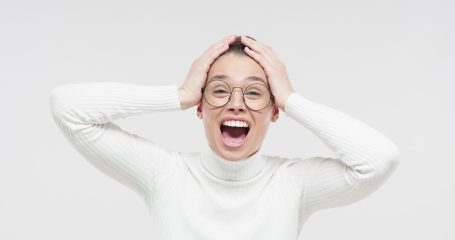Cute girl with glasses opens